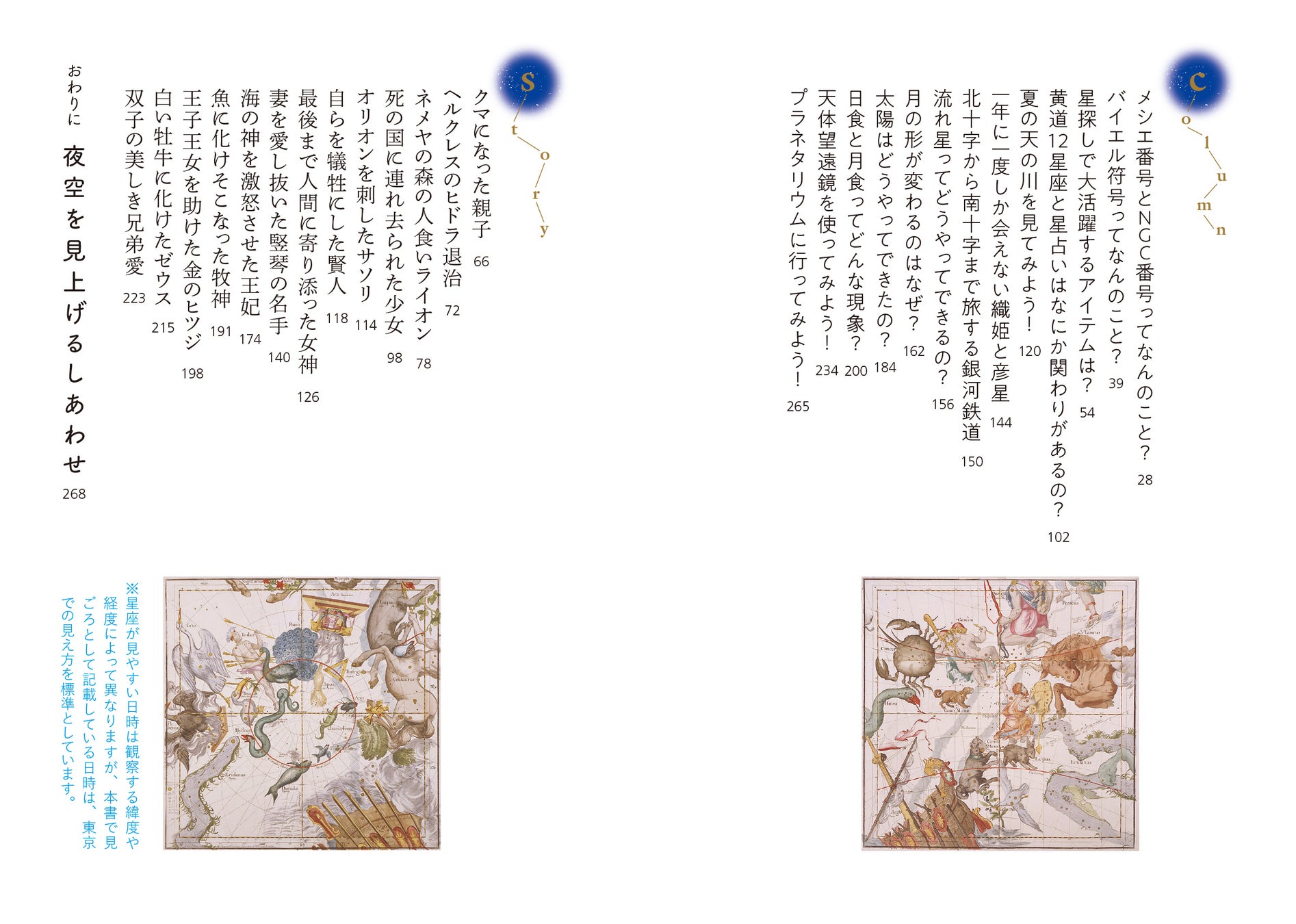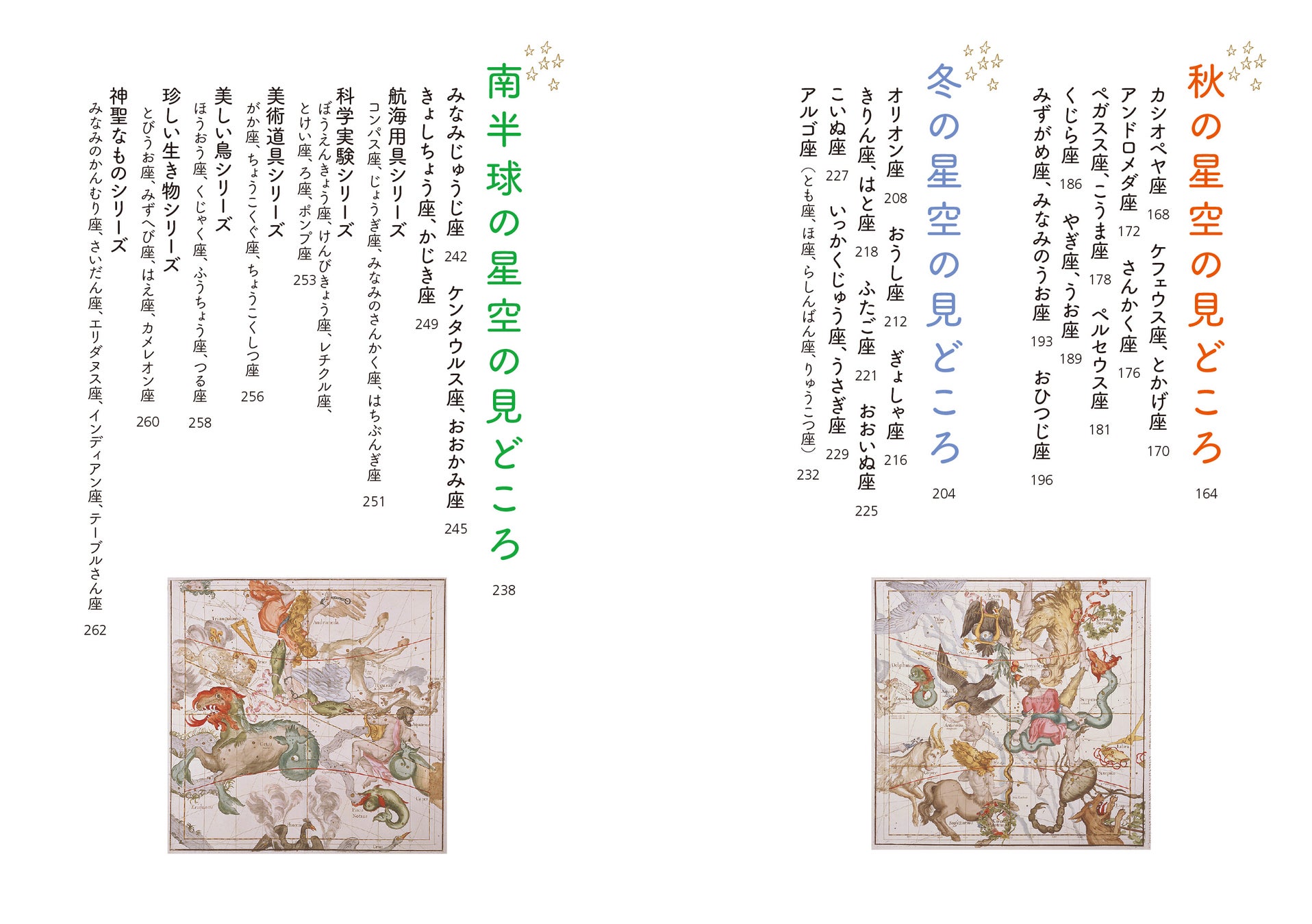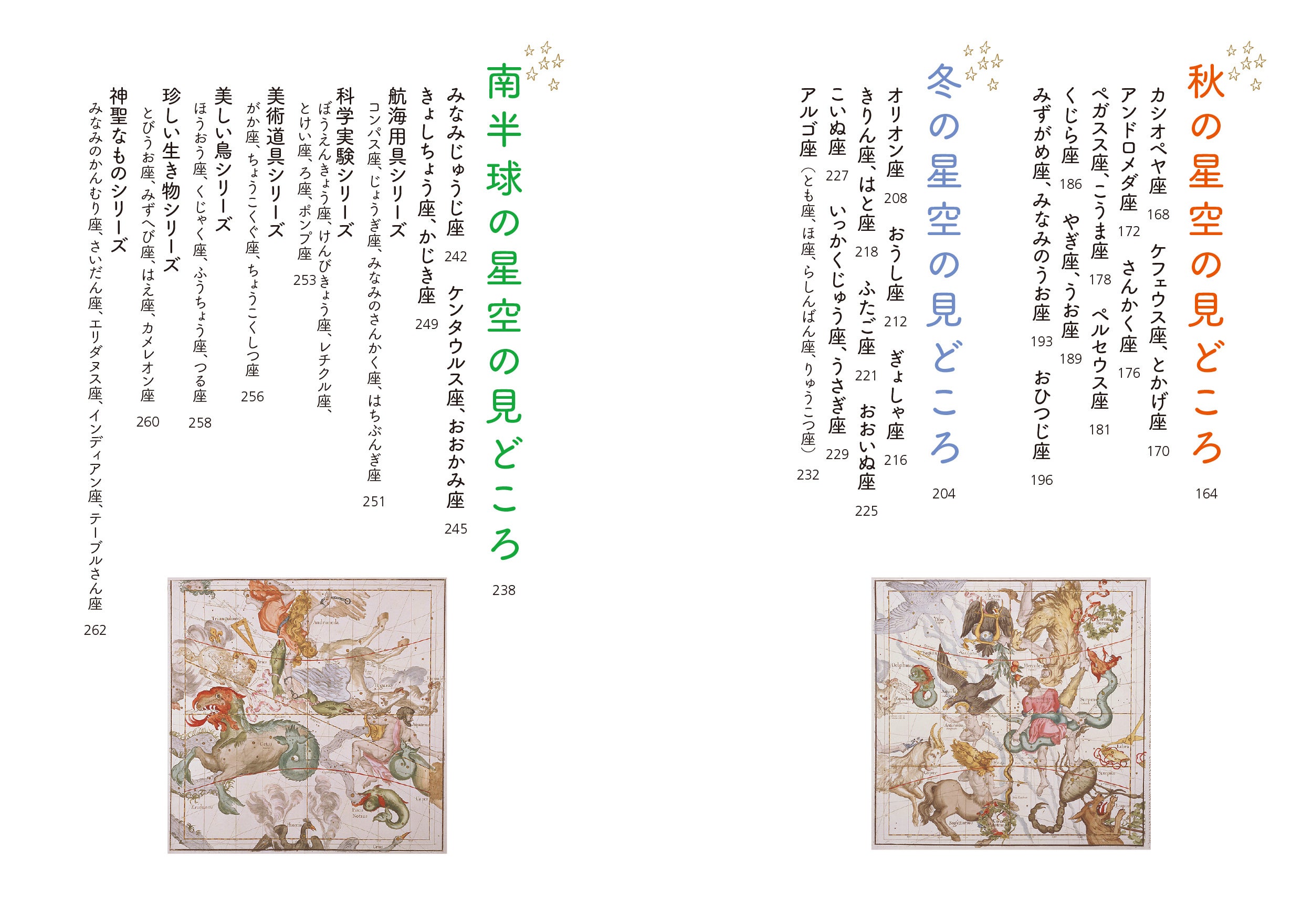 春夏秋冬の星座から、一度は見たい南半球の星座まで。最初から読まなくても、季節によって、また知りたい星があればその星のところからでも、いつでもみなさんの手元に置いてご覧ください。