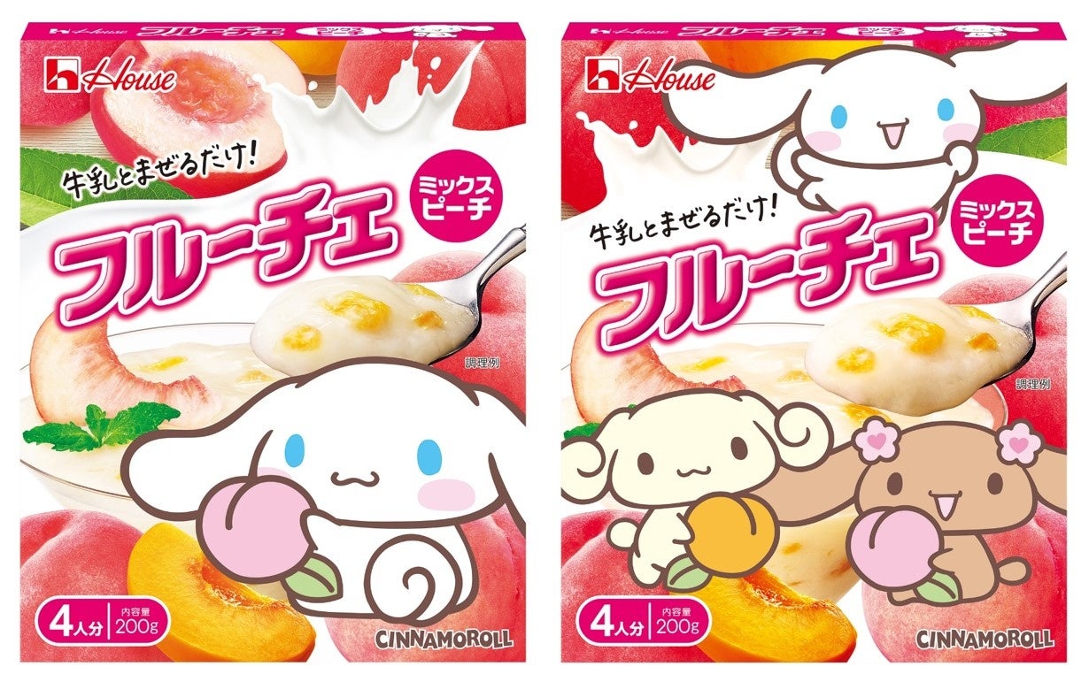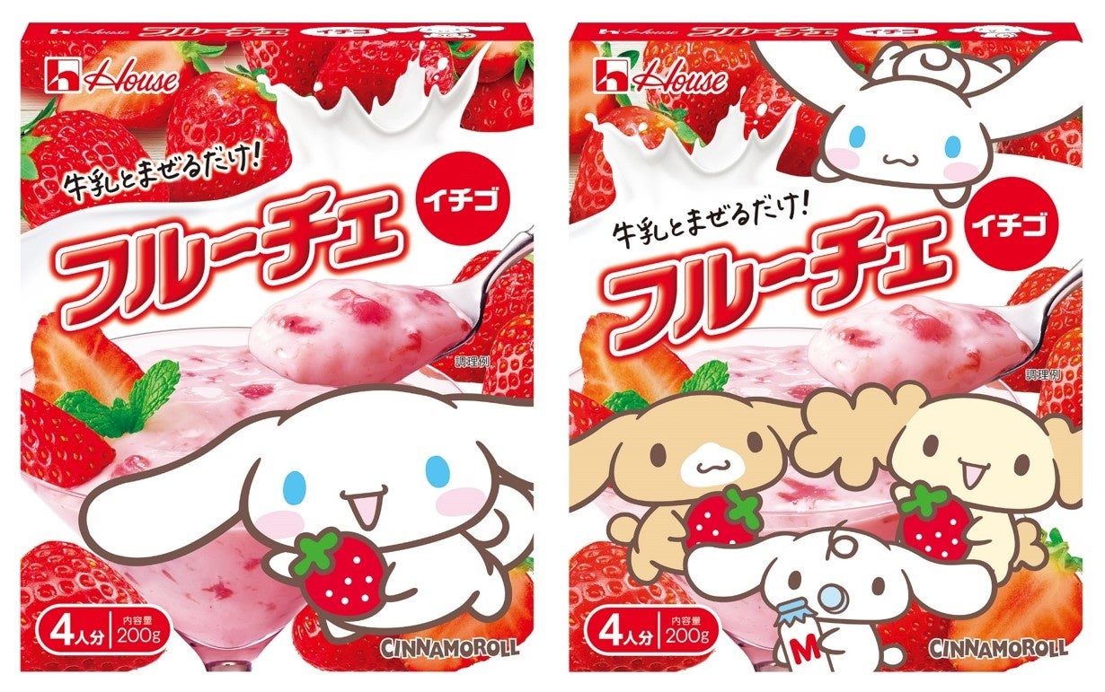 ハウス食品は、フルーチェ<イチゴ><ミックスピーチ>の2アイテムにて、株式会社サンリオのキャラクター「シナモロール」とコラボした期間限定パッケージを1月中旬より順次発売いたします。デザインは全部で4種類あり、イチゴやももを手に持ったシナモロールのかわいらしいイラストが描かれています。また、パッケージ裏面には切り取って親子で遊べる”ゆび人形”のイラストや、シナモロールのイラストを使用した特別なオリジナル絵本(1月15日より公開予定)が楽しめるQRコードがついています。