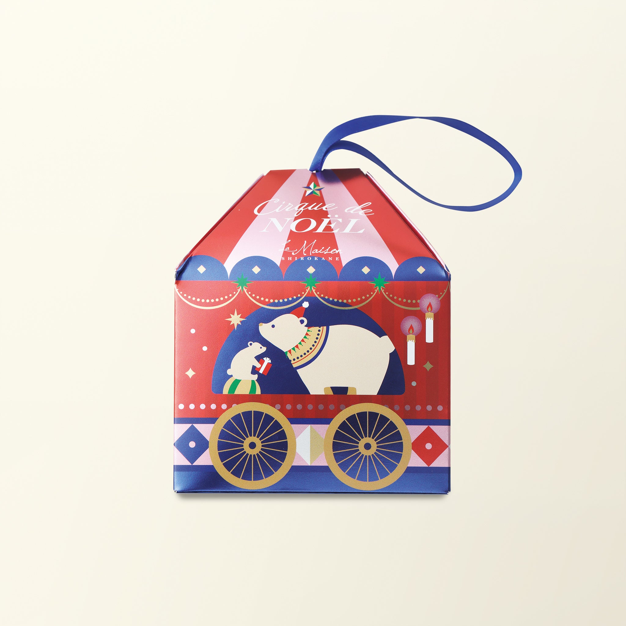 クリスマス限定のデザインフィルムに包まれた星形のミルクショコラを、リボンのついた可愛らしいオーナメントボックスに詰め合わせました。 サーカス団のゾウ・ウサギ・イヌ、3種類のデザインボックスは、ツリーに飾ってもそのまま贈っても、華やかに映えるプチギフトです。