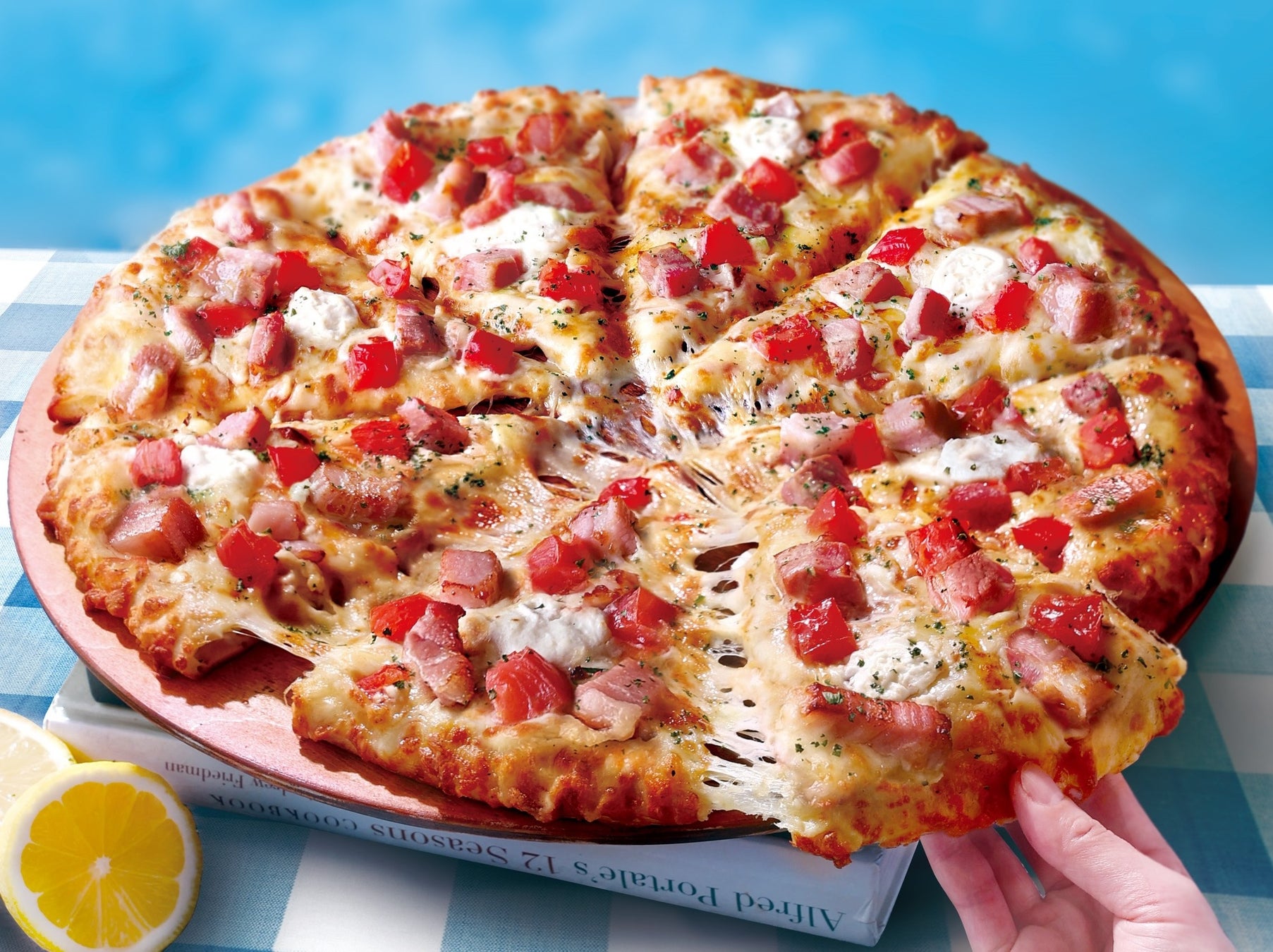 熟成パンチェッタの旨みたっぷり!瀬戸内レモンを使用したピザーラ自慢の特製ソースのさわやかな香りに、クリームチーズのまろやかなコクがマッチした、食べ応えのあるピザ