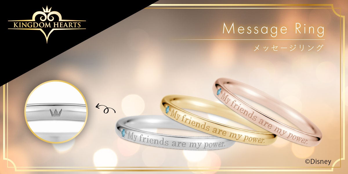 「キングダム ハーツ」 新作メッセージリング10種類。「つながる心が俺の力だ(My friends are my power.)」など。英文セリフに天然石を添えて 9月30日(金)発売