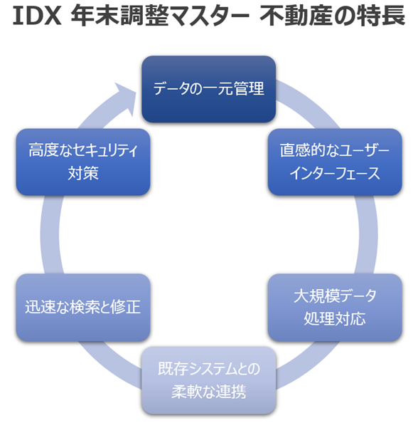 これらの特徴により、「IDX 年末調整マスター不動産」は、業務の効率化と正確性向上を支援し、企業の負担を軽減します。