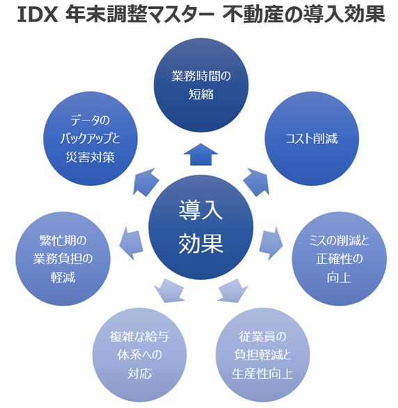 これらの効果により、「IDX 年末調整マスター不動産」は、不動産企業の業務効率化と競争力強化を強力に支援します。