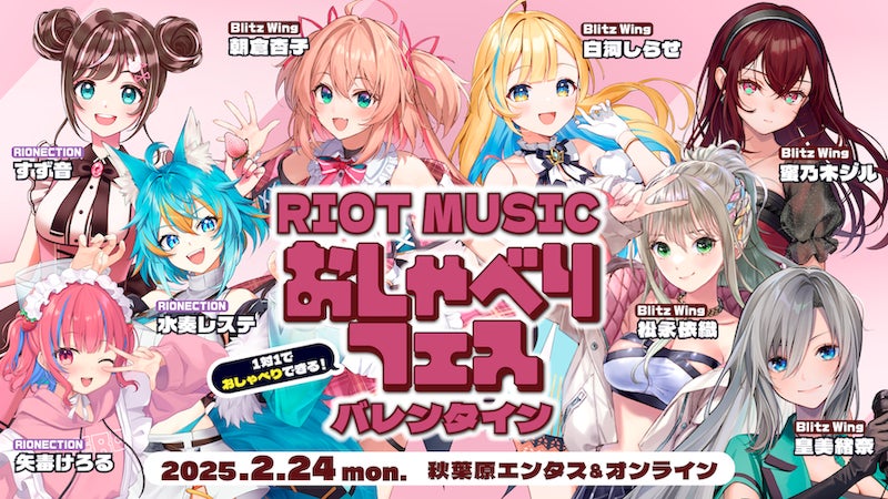 本イベントは、リアル会場とオンラインの両方で推しとの1on1トークをお楽しみいただける内容となっています。今回は、VSingerレーベル「Blitz Wing」所属アーティスト5名に加え、「RIONECTION」参加メンバー3名が出演いたします。