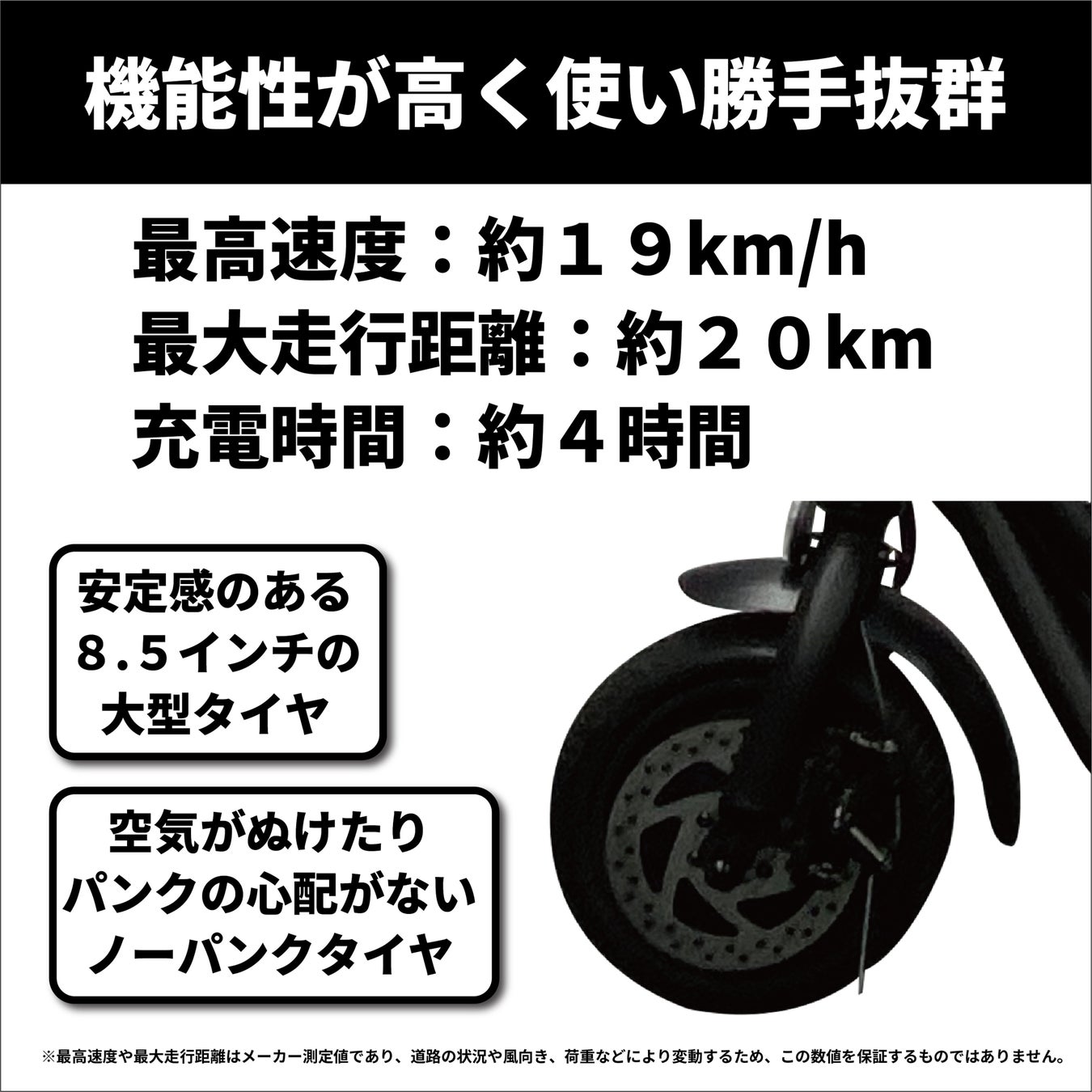 最高速度は約19km/h、約4時間の充電で最大20㎞走行可能です。