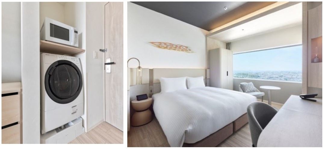 連泊滞在に便利な電子レンジ・洗濯機を装備しご自宅のようにお過ごしいただけます。また、数日分の洋服を十分に収納できるクローゼットを配し、出張などビジネスでのご利用や連泊滞在の旅行に最適です。