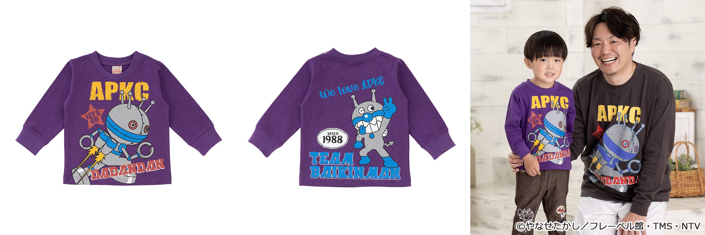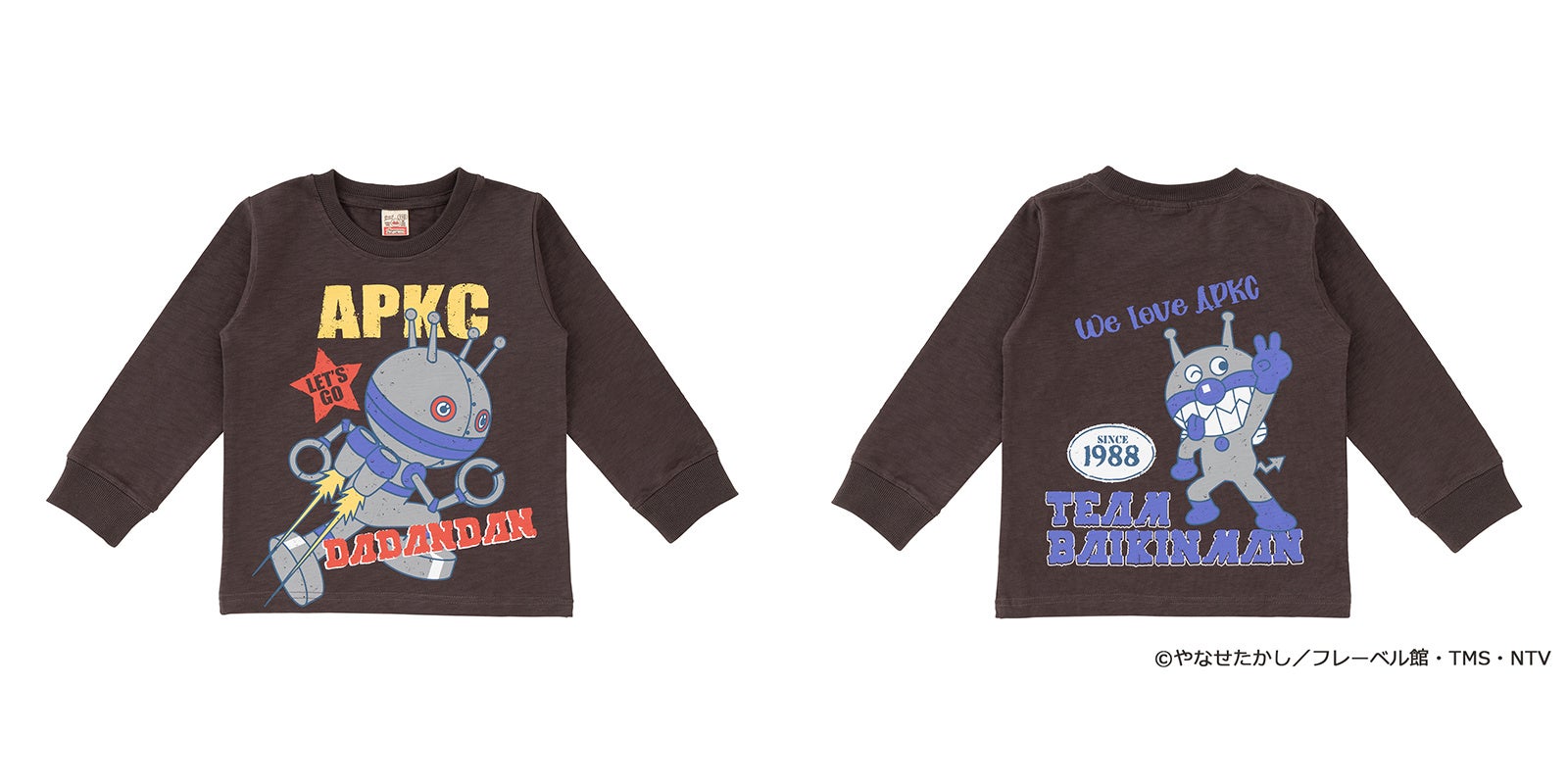 かすれたようなデザインがかっこいい!バックプリントにはばいきんまんもデザインされています。