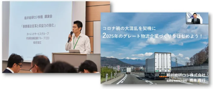 ▲先進物流企業視察セミナー(左)と、経営戦略セミナー(右)の様子