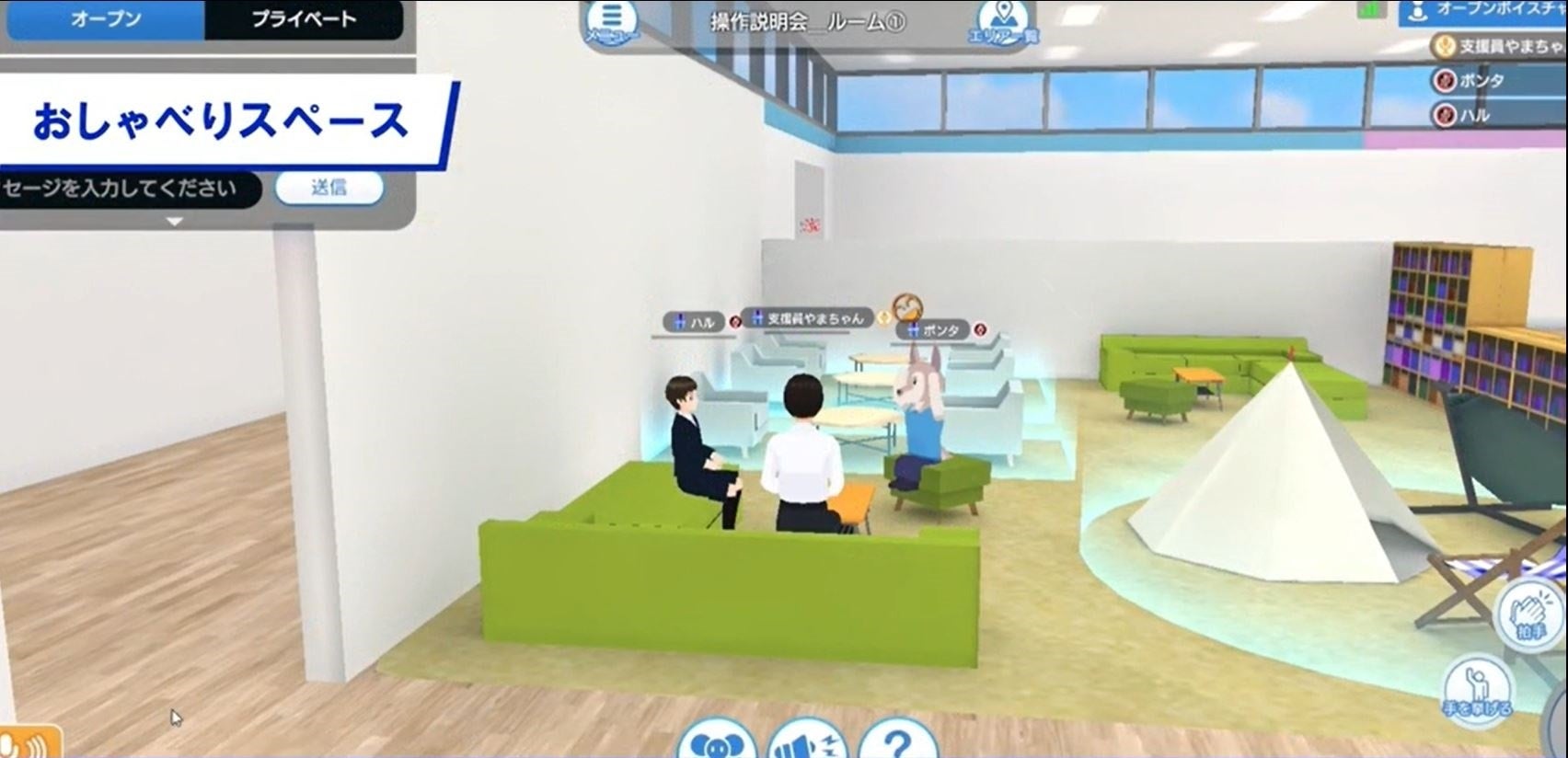 CSR(企業の社会的責任)活動の一環としてレノボ・ジャパンと協業実績があり、不登校対策支援で多くの実績を持つ認定特定非営利活動法人キッズドアの研修を受けたオンライン支援員が、3Dメタバース内で児童・生徒に寄り添います。
