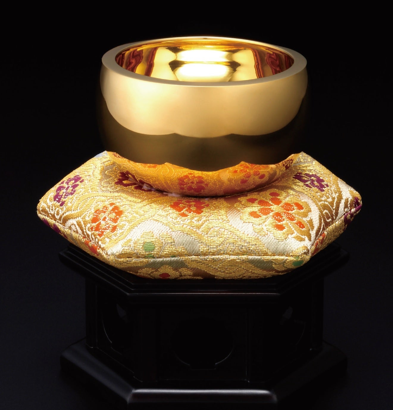 金工芸の「おりん」はひとつひとつ手作りのため、音色は全て異なります。その澄んだ音色は「1/fのゆらぎ」と言われる心地良い音色です。金ならではの「長い余韻」を確かめ、こころに響く音をお選びください。