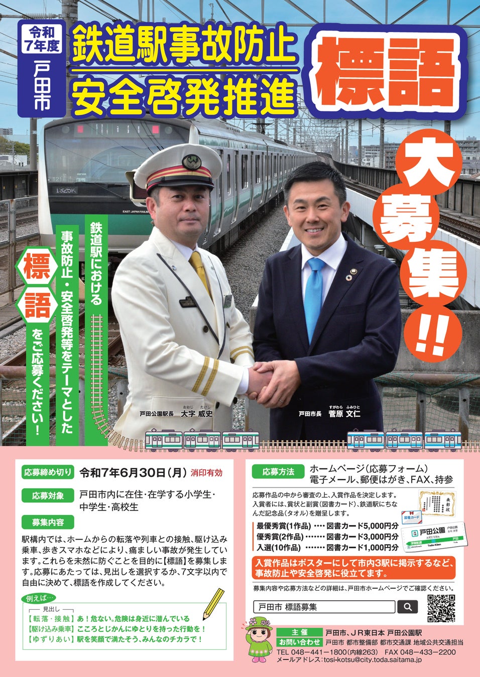 埼玉県戸田市 × 東日本旅客鉄道株式会社 戸田公園駅 共同事業鉄道駅事故防止・安全啓発推進標語を募集します