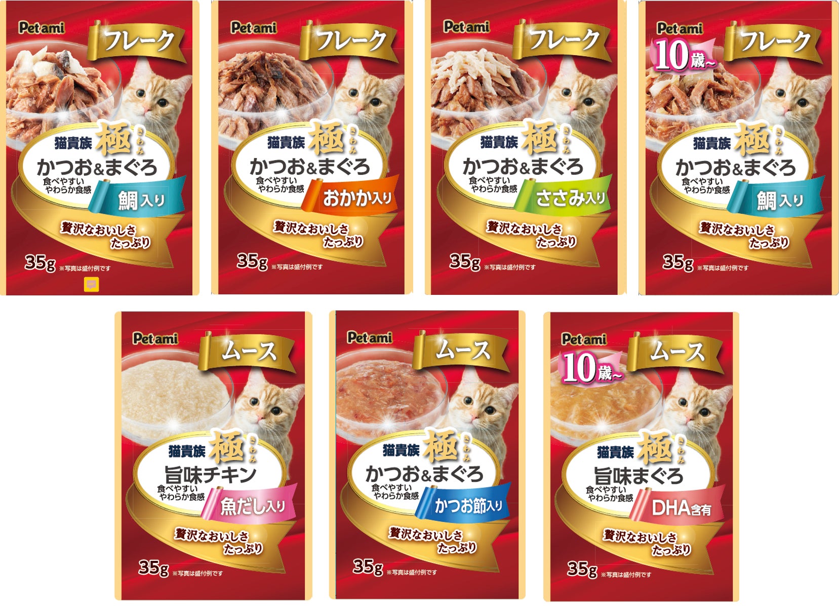 猫ちゃんの夏の暑さによる食欲減退時におすすめ 食べやすく、おいしいフレークタイプとムースタイプの猫用ウェットフード「Pet ami 猫貴族 極(きわみ)フレーク・ムースタイプ」がデビュー
