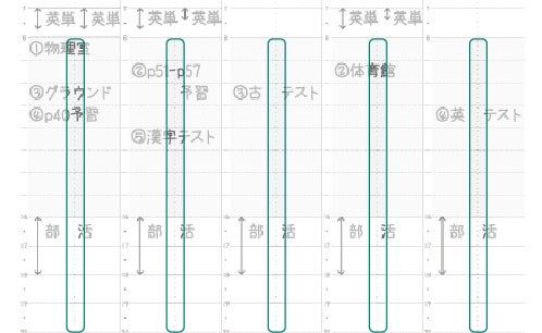 1日の記入欄には予定と実績を把握するための「予実線」があり、タスクの進捗が把握しやすい