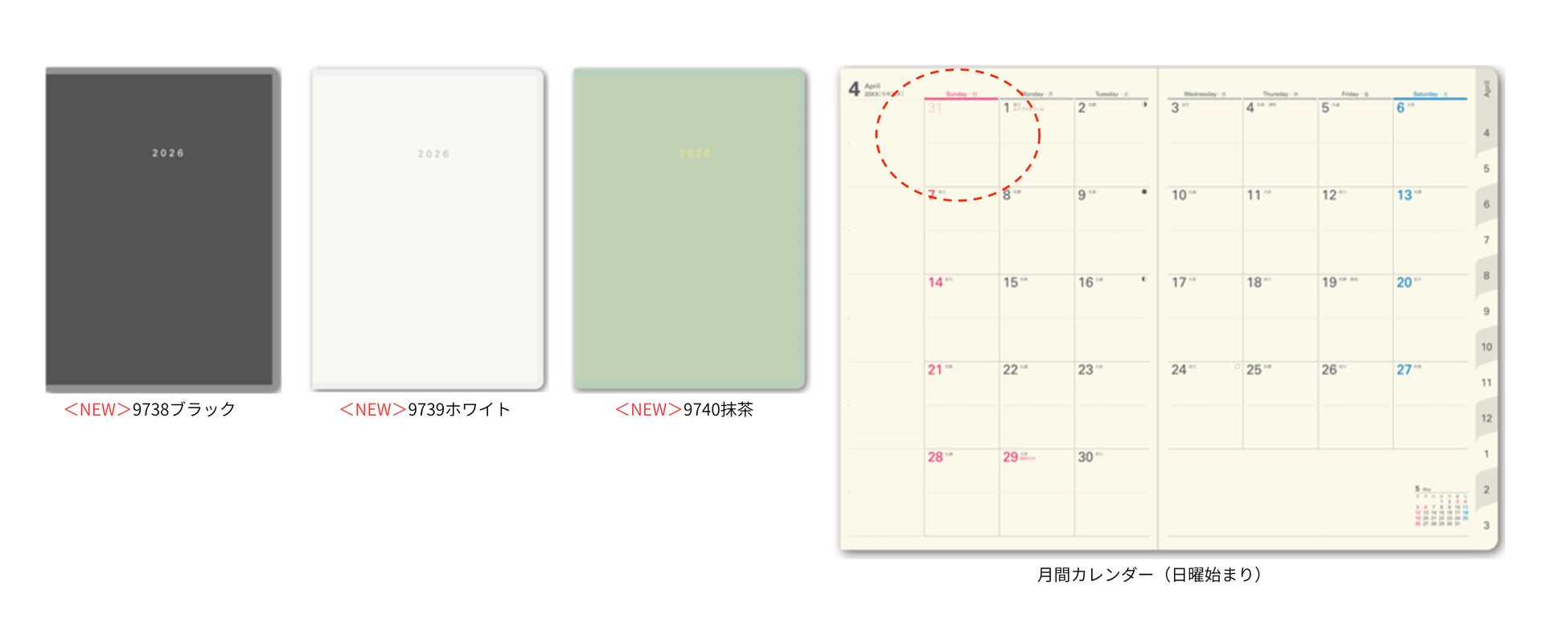 ■たくさん書ける工夫が満載!NOLTYアクセスDepotA5マンスリーに日曜始まり登場