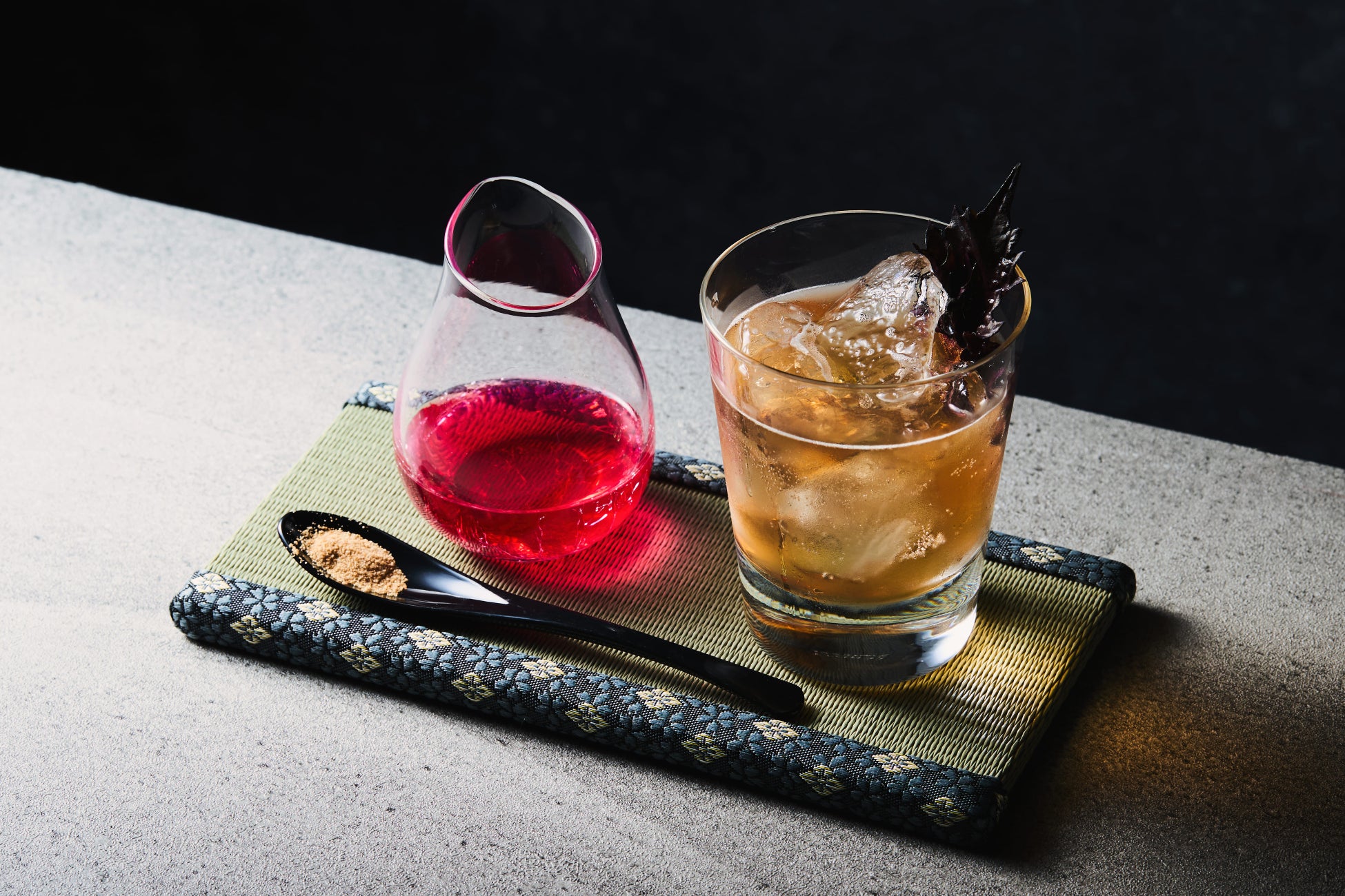 「季の美 京都ドライジン」に赤紫蘇を漬け込んだ香り豊かなインフュージョンジンに、トニックウォーターをあわせたオリジナルジントニック。お好みで自家製の赤紫蘇シロップを注ぐと、さらにさわやかな香りをもたらし、フルーティな味わいへ変化します。別添えの梅塩は味のアクセントに。梅風味のすっきりとした後味も愉しめます。