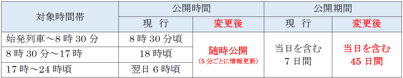 当社は列車の遅延の証明として、延着証明書をWEBおよび紙媒体で発行しています。これまでWEBでは、1日3回の定められた時間にのみ情報更新を行っていましたが、今後は5分ごとに情報更新を行うことでリアルタイムでの取得が可能になるほか、公開期間を最長45日分まで拡大します。