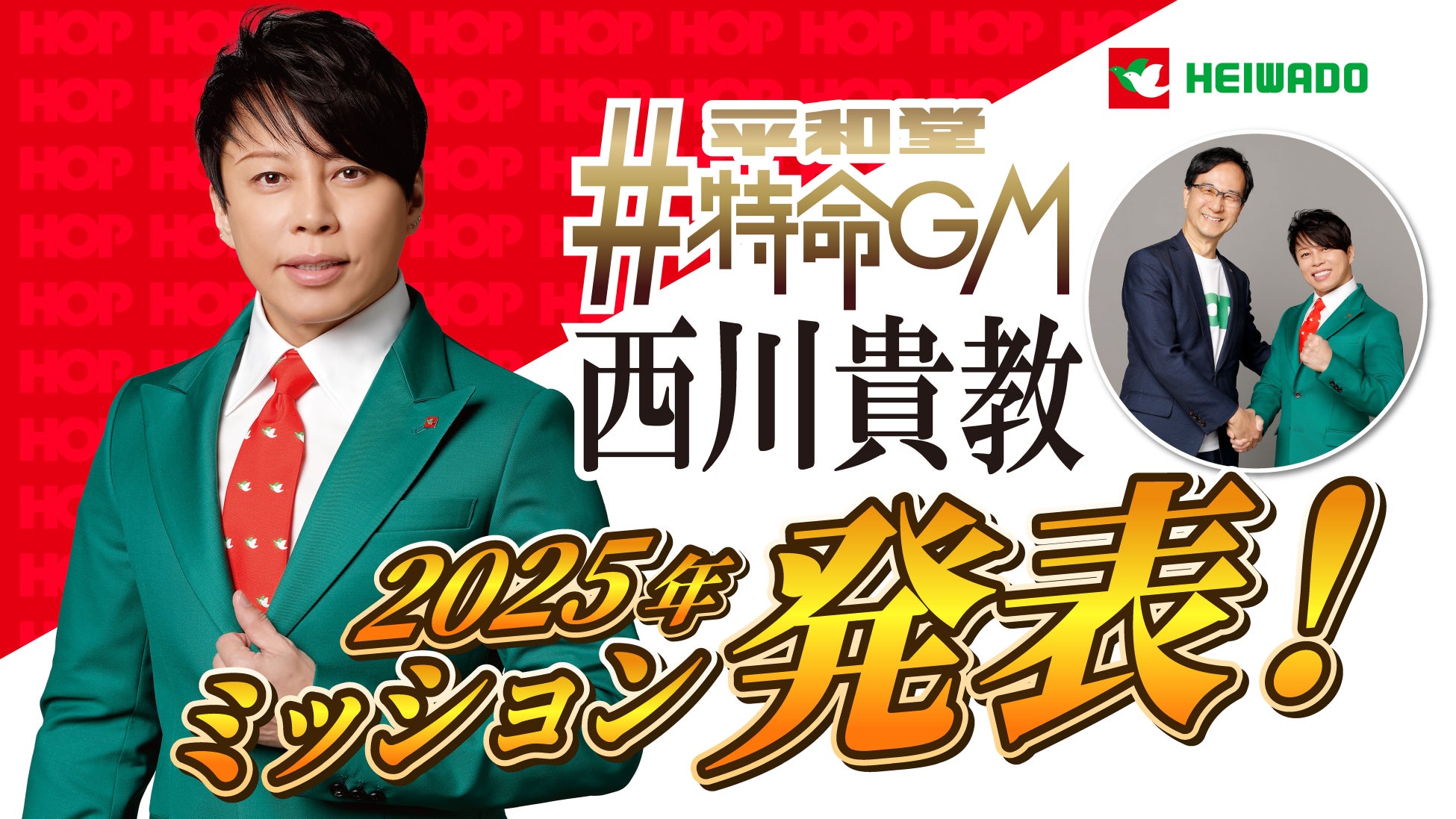 株式会社平和堂(滋賀県彦根市、代表取締役社長執行役員CEO:平松正嗣、以下「平和堂」)は、西川貴教さんに、昨年に引き続き平和堂特命GMを続投いただくことになりましたのでお知らせいたします。2023年3月1日、西川貴教さんに初めて「平和堂特命GM」に就任いただき、今年で3年目となります。昨年までは平和堂こだわりブランドE-WA!など商品に関することをPRいただき大変好評でした。今年は平和堂をより便利にお得に使っていただけるHOP会員サービスの魅力を伝えていただく予定です。さらに、大変好評いただいております平和堂イメージソング「かけっことびっこ」西川貴教ver.も継続いたします。季節に合わせた西川さんのスペシャルコメントとともにお楽しみください。