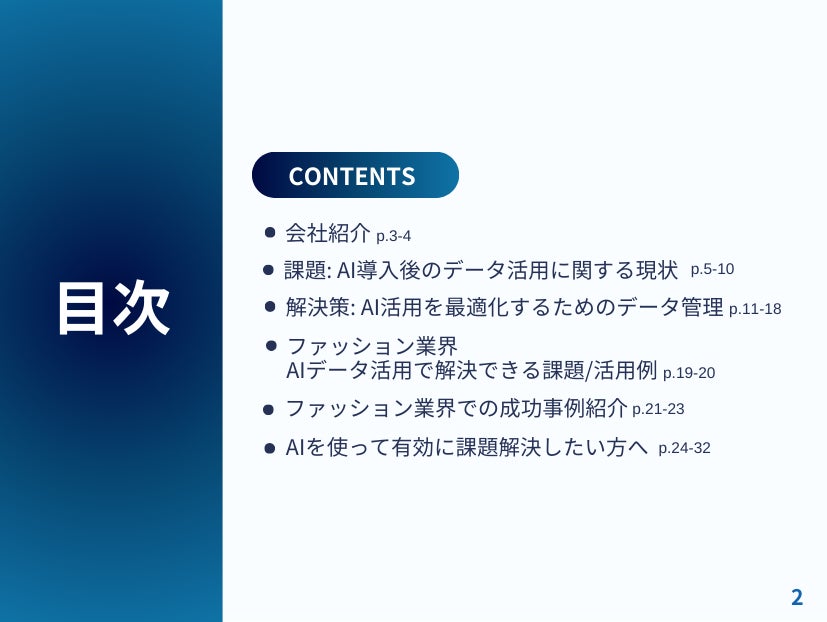 本レポートでは、ファッション業界における具体的な課題解決策と活用事例を紹介しています。AI活用を最大化するための指針としてご活用ください。