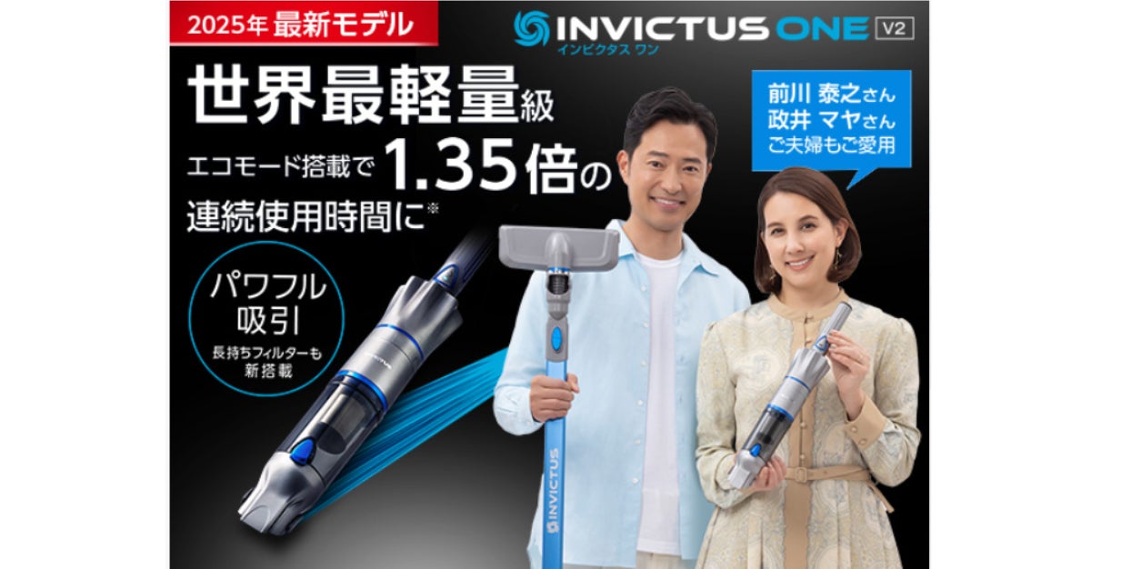 数多のドラマ、映画、舞台でも活躍中の俳優、前川 泰之 (まえかわ やすゆき) さんと、司会やラジオパーソナリティ、そして3児の母としても奮闘中のアナウンサー、政井 マヤ (まさい まや) さんご夫妻を迎え、『インビクタス ワン V2』の凄さをご体験頂いた新映像を全国で放映いたします。