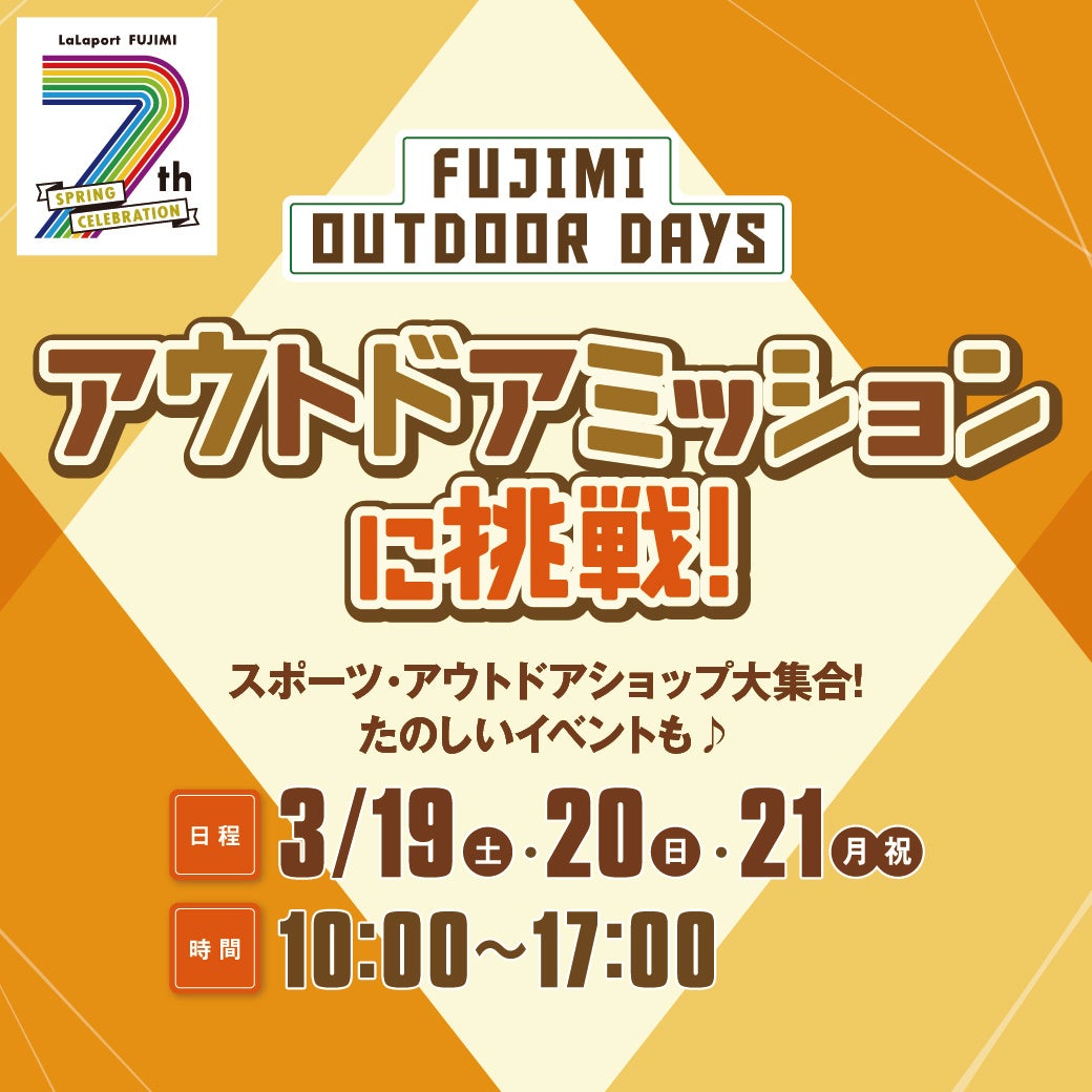 三井不動産商業マネジメント株式会社(所在:東京都中央区 代表取締役社長 大林修)が運営する三井ショッピングパークららぽーと富士見は、2022年4月10日(日)に創業7周年を迎えます。これまで地域の皆さまをはじめ、多くのお客さまにご愛顧いただいた感謝の気持ちを込めて、2022年3月19日(土)~4月10日(日)の期間、7周年祭「7th SPRING CELEBRATION」を開催いたします。期間中はオトクな特典や、プレゼントキャンペーンのほか、家族みんなで楽しく遊べるイベントなどさまざまな企画をご用意しております。