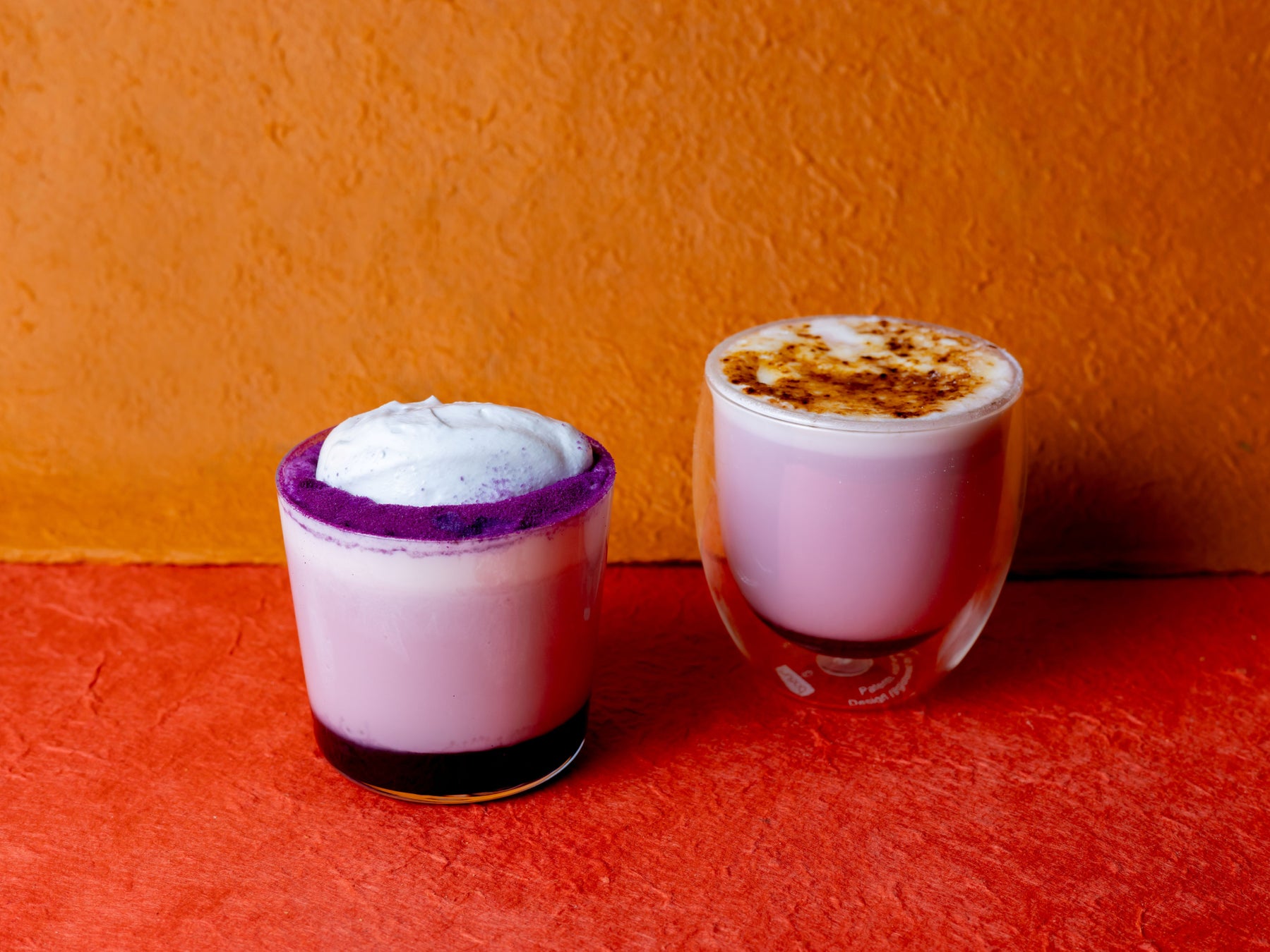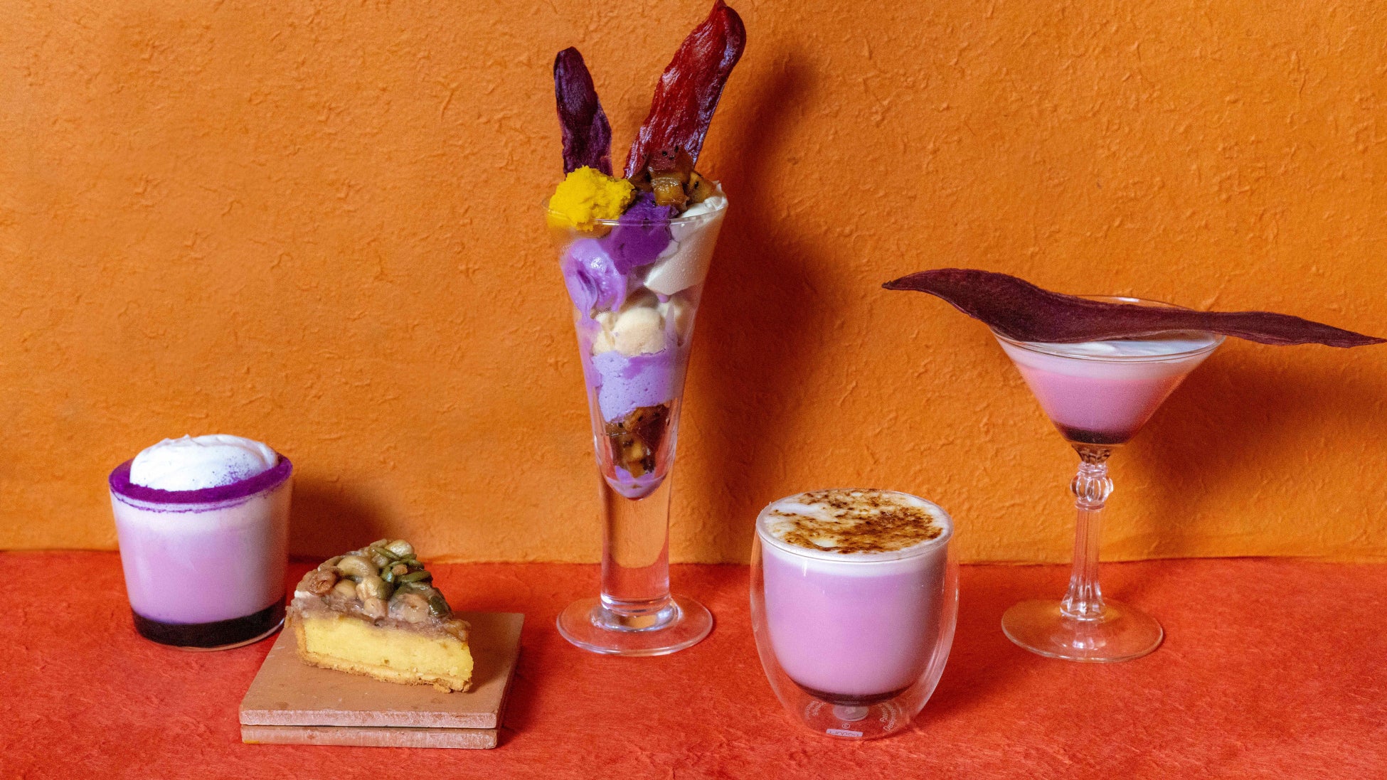 ホットは表面のクリームをキャラメリゼし、香ばしい苦みをプラス。紅芋や豆乳の自然な甘みをより一層引き立てます。アイスはたっぷりの豆乳クリームをのせ、濃厚な甘さとともに味の変化をお楽しみいただける一杯に仕上げました。