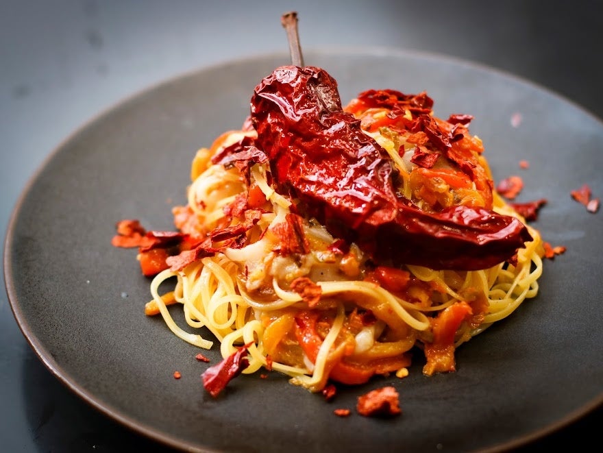 バジリカータ産ドライパプリカとペペロナータ、水タコの冷製バベッティーニ 2,100円