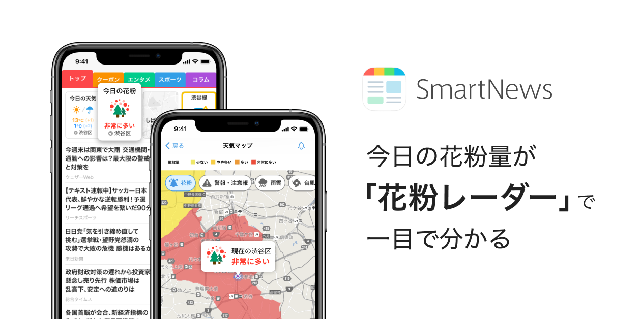 スマートニュース、「花粉レーダー」をアプリのトップ画面に追加 指定地域の『今日の花粉の飛散量』がワンタップで分かる
