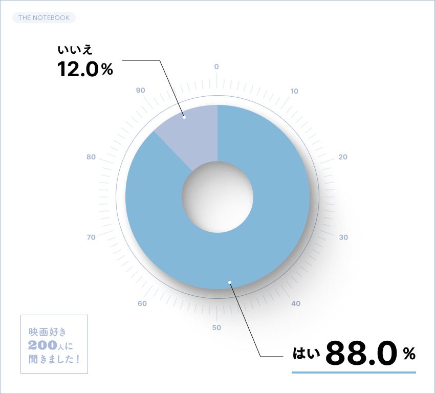 「映画館で鑑賞したいと思いますか?」という質問では「はい」が88%。