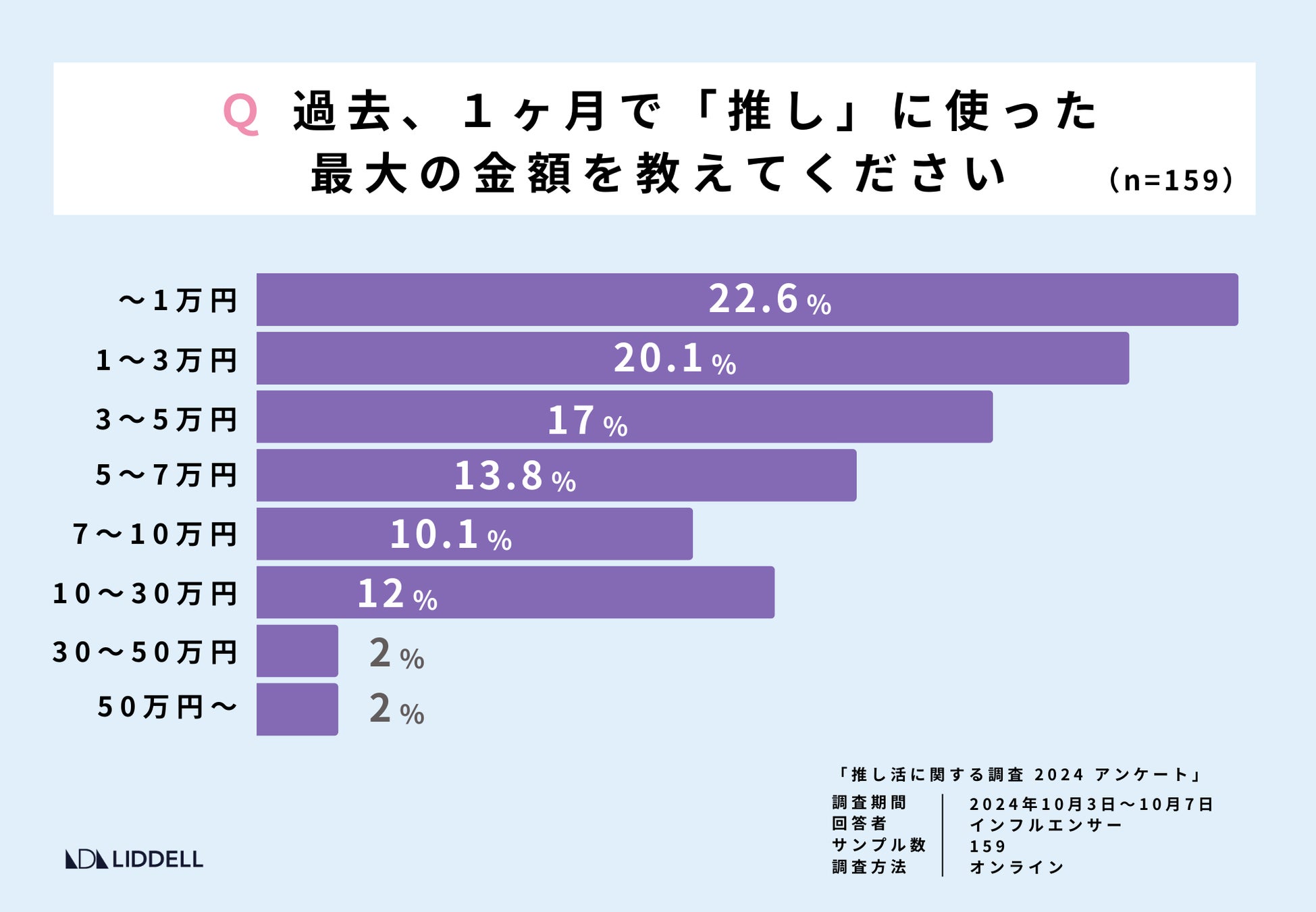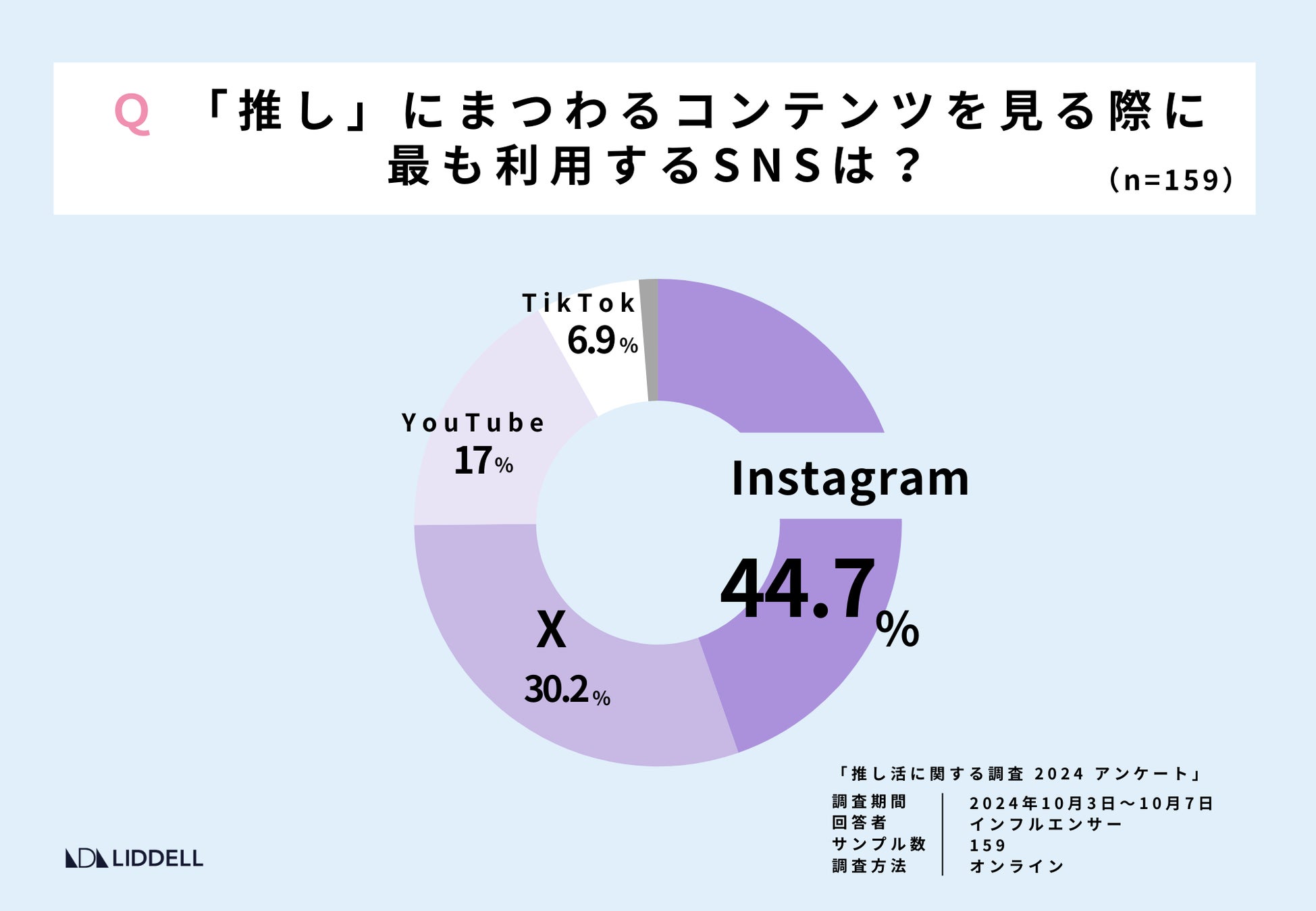今回は、当社運営のマーケティングプラットフォームLIDDELL INFLUENCER WORKSPACE(LIW)に登録しているインフルエンサーの中から 159名を対象に「推し活」の最新トレンドについてアンケート調査を行った結果の、第2弾をレポートいたします。