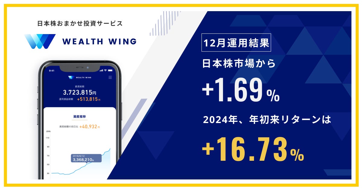 Finatextグループの日本株おまかせ投資サービス「Wealth Wing(ウェルスウイング)」、2024年12月の運用結果は日本株市場を1.69%上回る