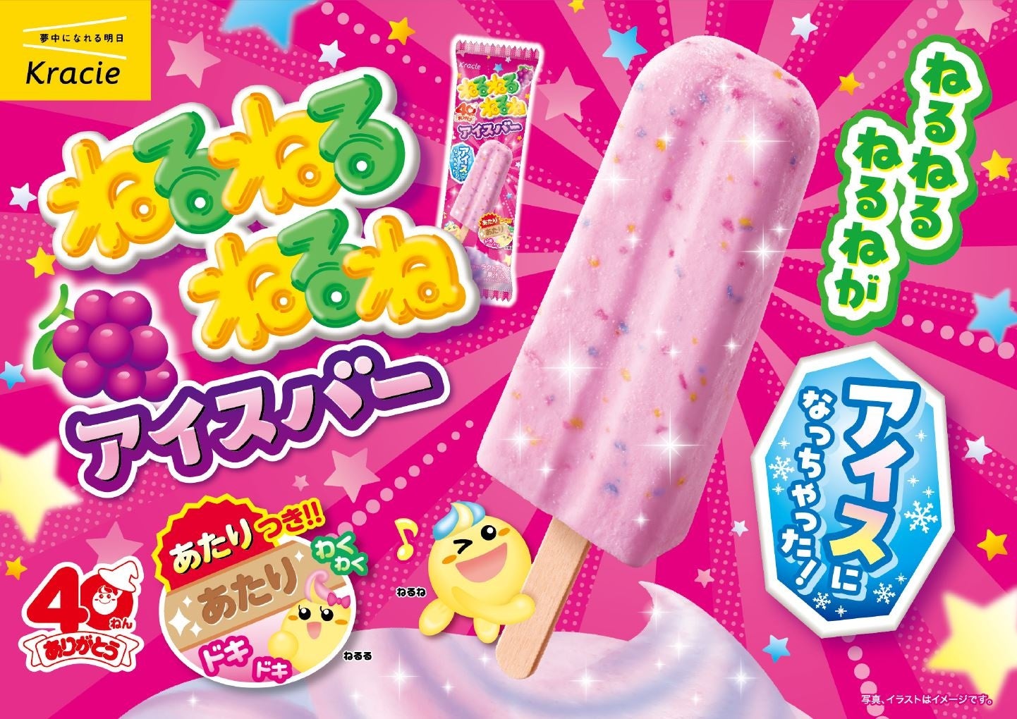 1986年の発売以来、“つくる楽しさ”を届けてきた「ねるねるねるね」が、40周年を記念してアイスバーとして登場します。味も楽しさも見た目も、「ねるねるねるね」らしさを詰め込んだアイスバーです。