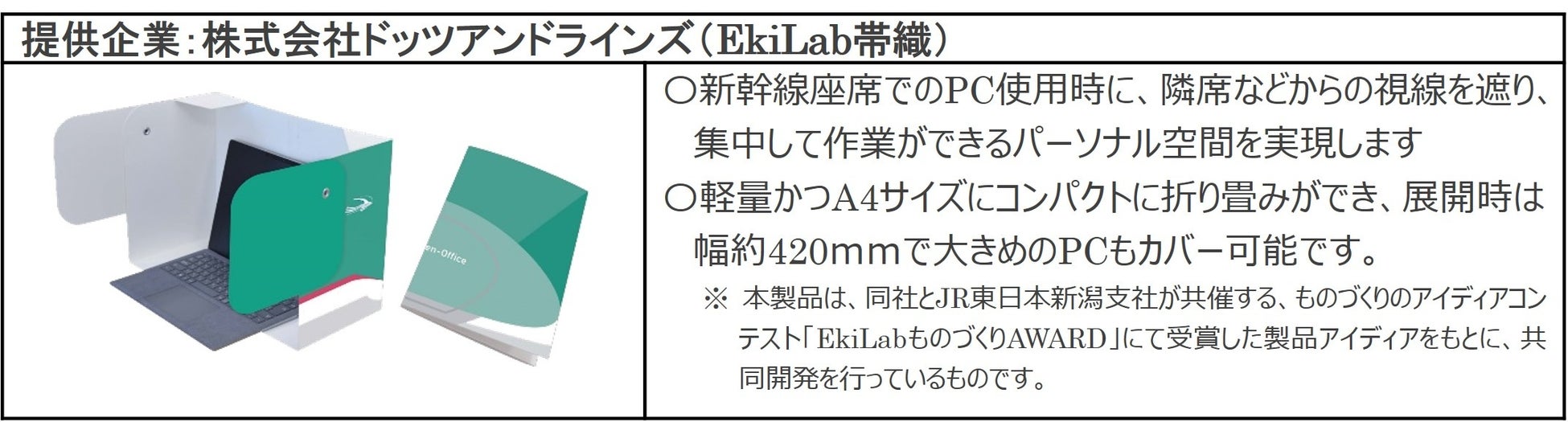 東北・北海道新幹線の一部列車(E5系/H5系)では、新幹線オフィス車両(8号車)内にて、折り畳み式間仕切りの無料貸出を期間限定で実施しております。