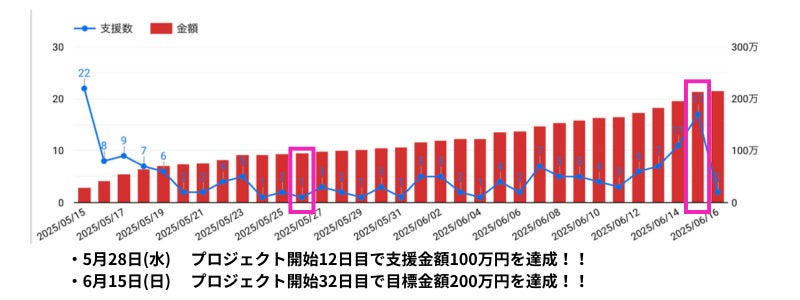達成金額:2,159,000円 / 500,000円(1st Goal) 1,000,000円(2nd Goal) 2,000,000円(Final Goal)