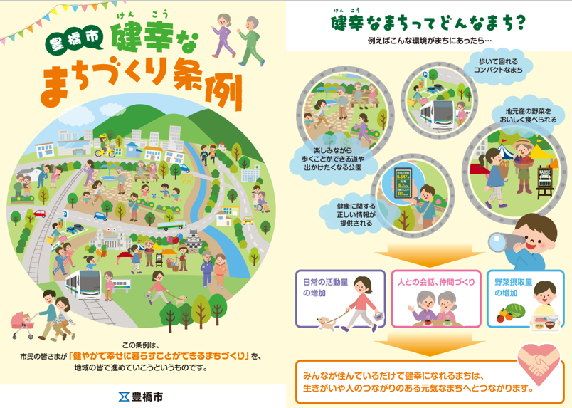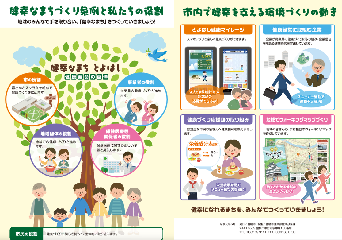 豊橋市は健幸なまちづくり条例を定め、市や事業者や市民などがそれぞれの役割を担っています。