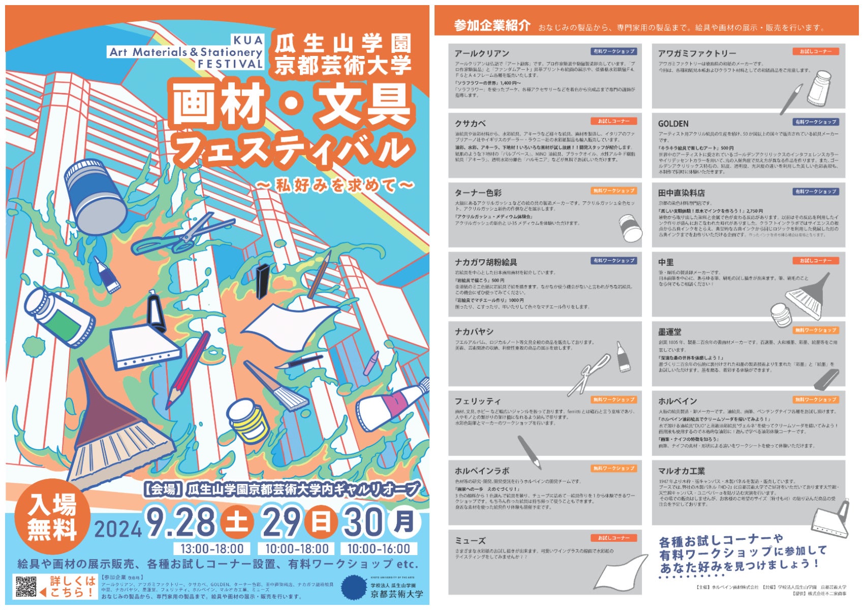 9月28日~30日に京都芸術大学内ギャルリ・オーブにて、ホルベイン画材株式会社とのコラボ企画「画材・文具フェスティバル~私好みを求めて~」開催決定!
