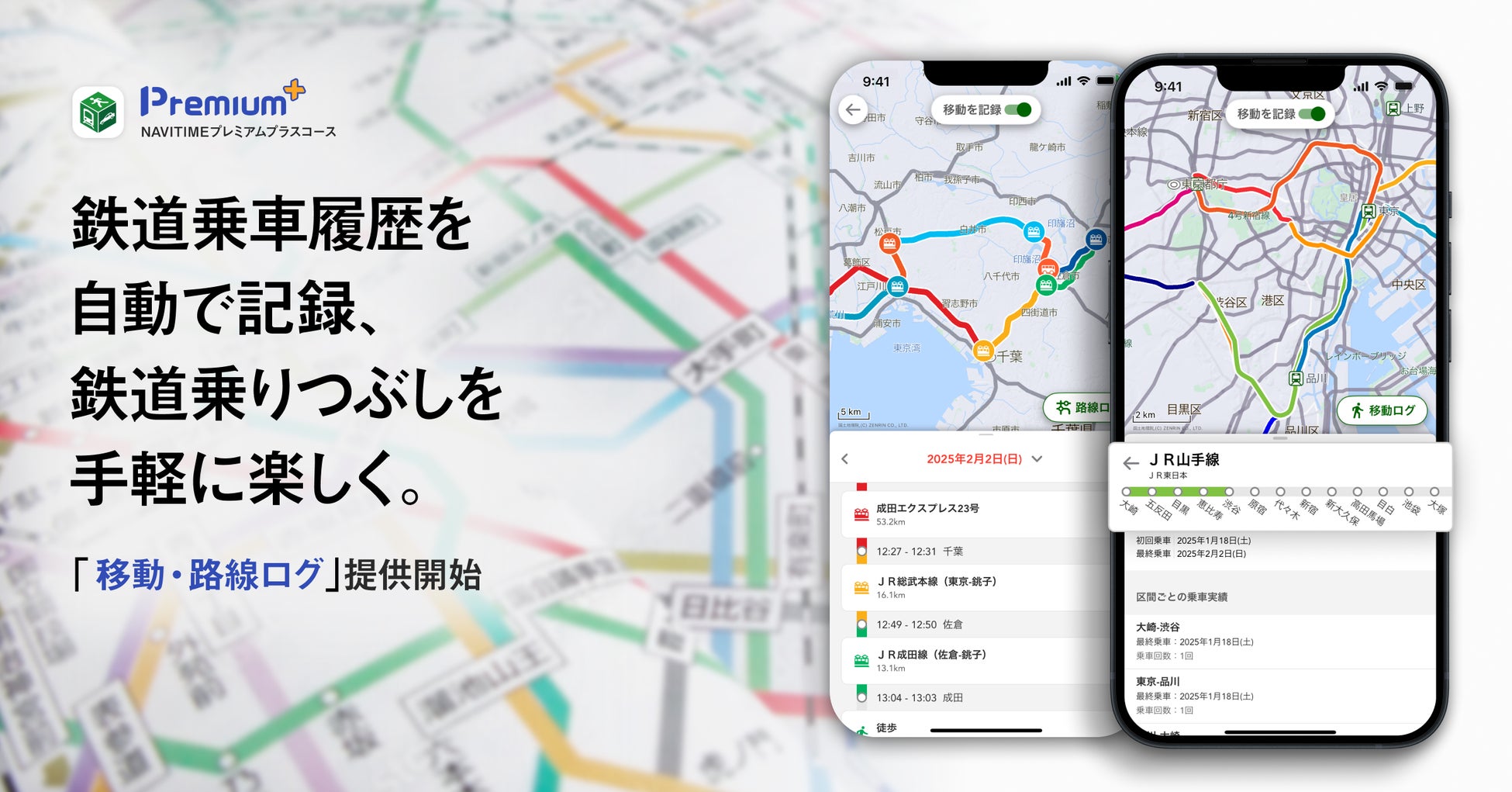 株式会社ナビタイムジャパン(代表取締役社長:大西 啓介、本社:東京都港区)は、2025年2月10日(月)より、総合ナビゲーションアプリ『NAVITIME』の「プレミアムプラス」コースにおいて、「移動・路線ログ」機能を提供開始します。また同日より、【「プレミアムプラス」年額コース半額キャンペーン】を実施いたします。