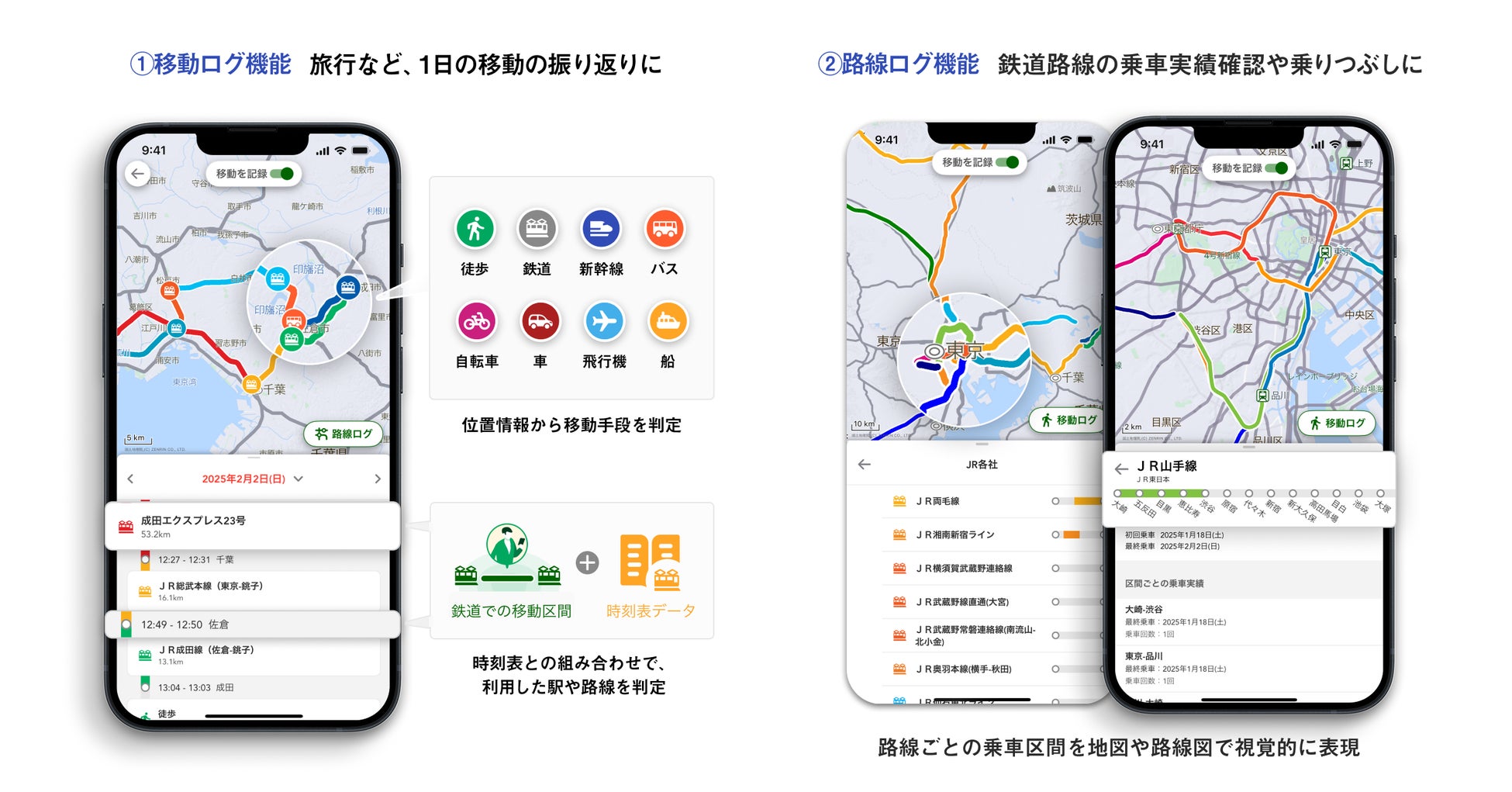 なお、今後「移動・路線ログ」機能で記録された移動手段や鉄道路線、乗降駅等を編集できる機能も追加予定です。