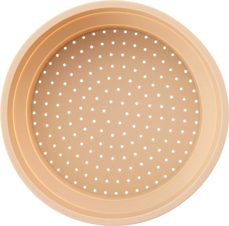 素材は、やわらかいシリコン素材で持ちやすく、食材をしっかりキャッチ。底面には細かな穴が開いていて、余分な脂や水分だけスッと落ちる仕組み。そのまま食材の旨味だけを閉じ込めて、ふっくら調理に仕上げます。竹せいろに比べてお手入れが楽なのもうれしい。