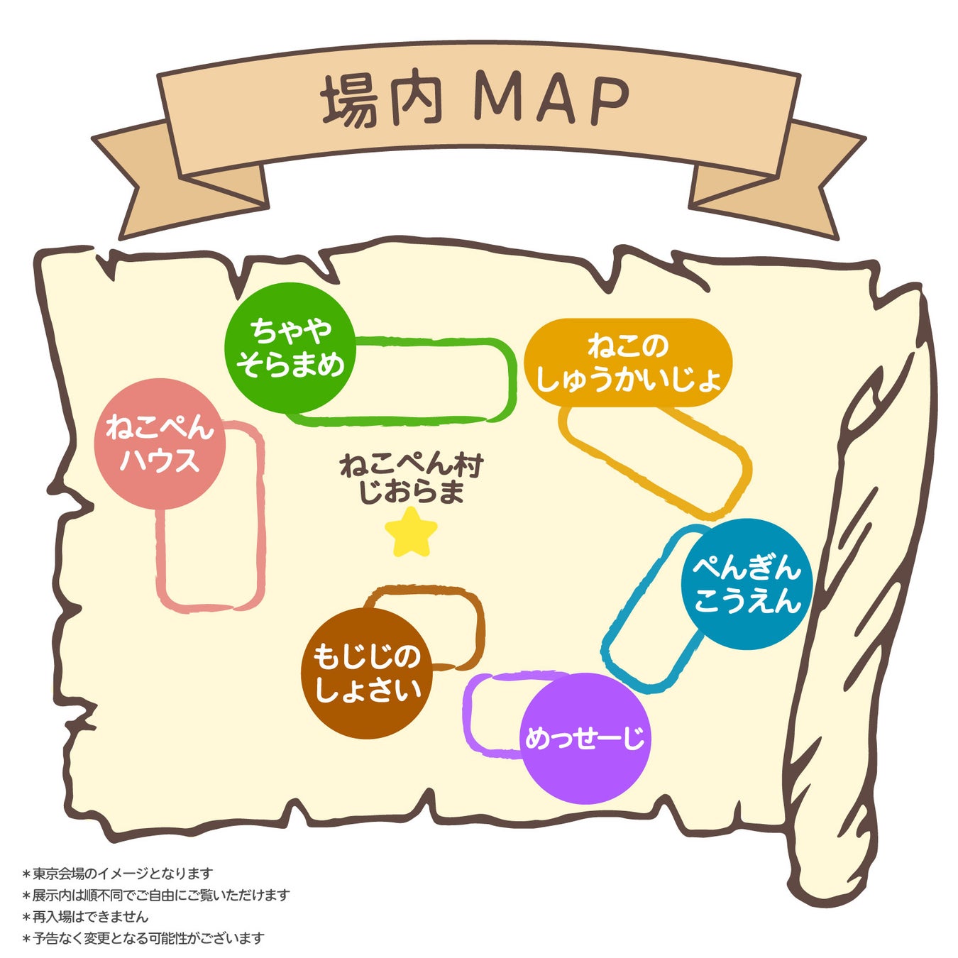 会場の中央には、ねこぺん村のマップを再現したジオラマを展示しています。