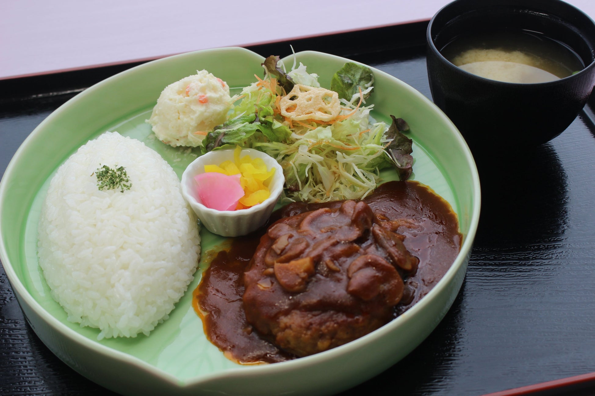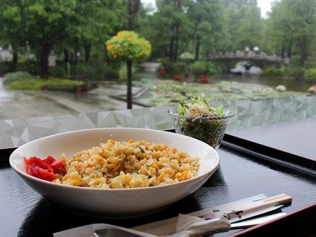 園内のレストランでは、「オニバス」をイメージした食器に盛り付けたハンバーグメニューなどをご提供しています。レストランの窓から、パラグアイオニバスのある「花影の池」もご鑑賞いただけますので、景観を楽しみながらお食事を召し上がっていただくことができます。