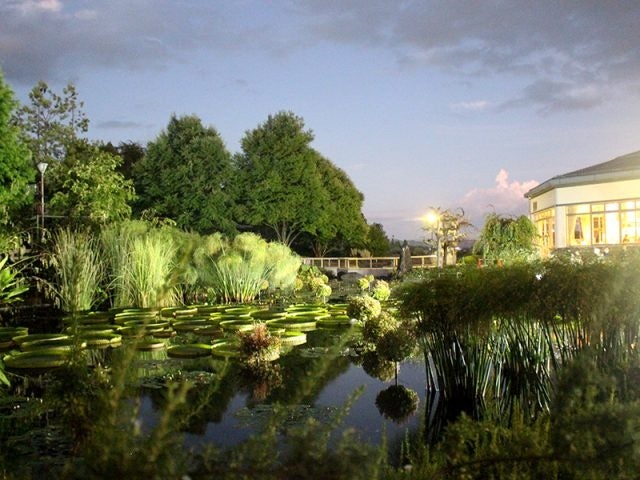 夏の夜間特別開園!普段は体験できない夜の園内や、植物たちの姿をご鑑賞いただけます。パラグアイオニバスのある「花影の池」をライトアップするほか、スタッフによる無料ガイドも実施します。