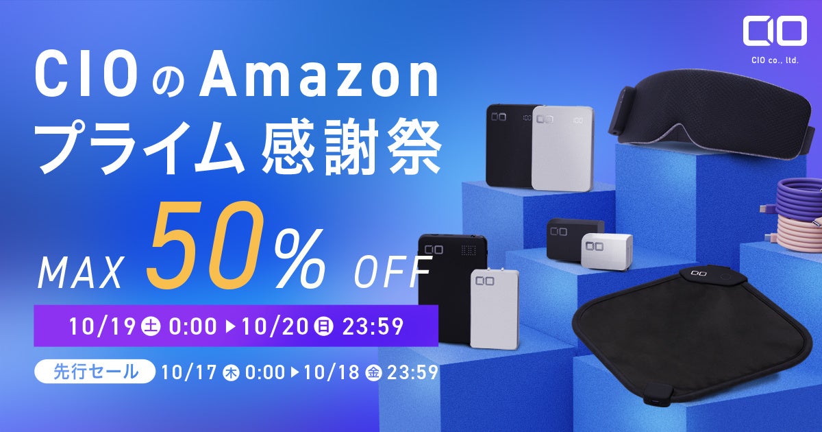 小型・高出力のモバイルバッテリー「SMARTCOBY」シリーズや、小型のGaN急速充電器「NovaPort」シリーズなどを展開する株式会社CIOは、「プライム感謝祭」に、売れ筋人気製品や新商品を最大50%OFFにて販売いたします。