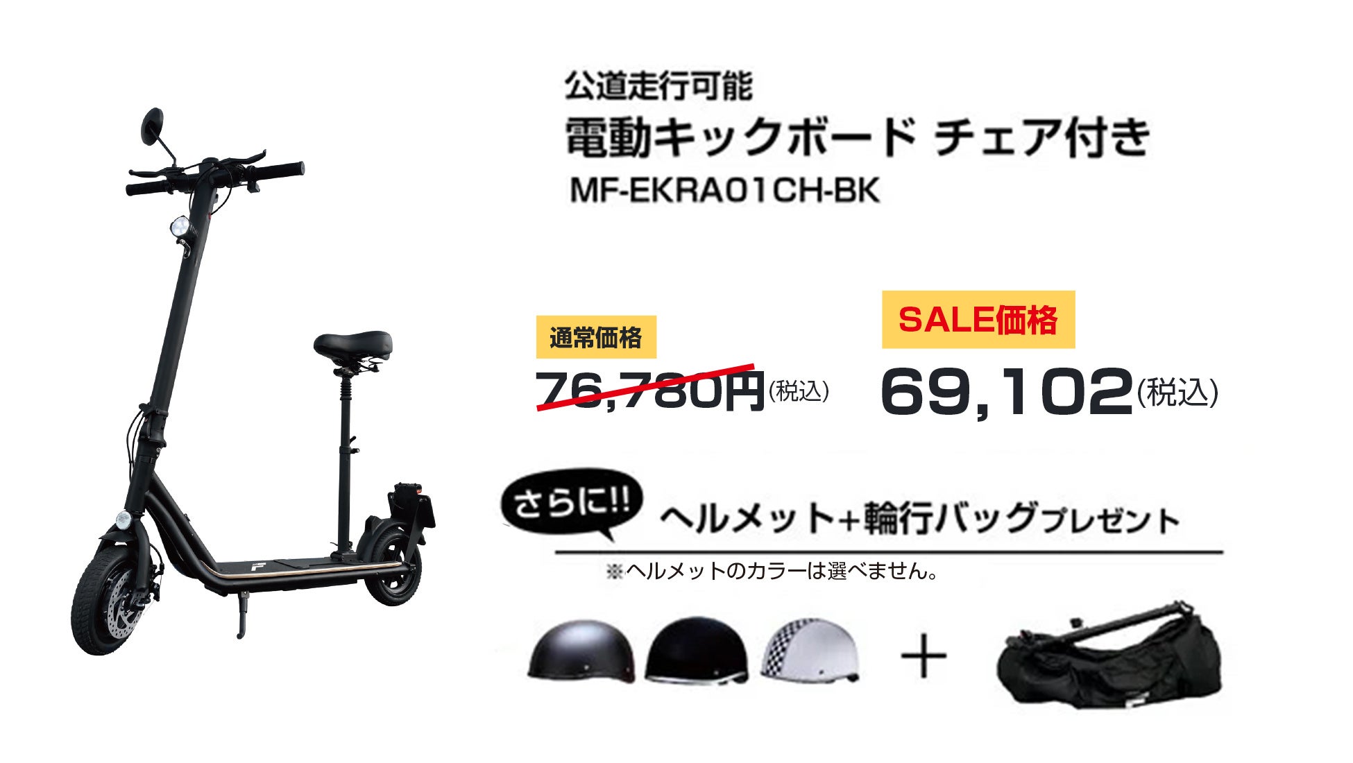 【公道走行・レジャー両用】安全装備を強化したエレクトリックキックボード MF-EKRA01S-BK SALE価格59,202円 ← 通常価格65,780円(税込)