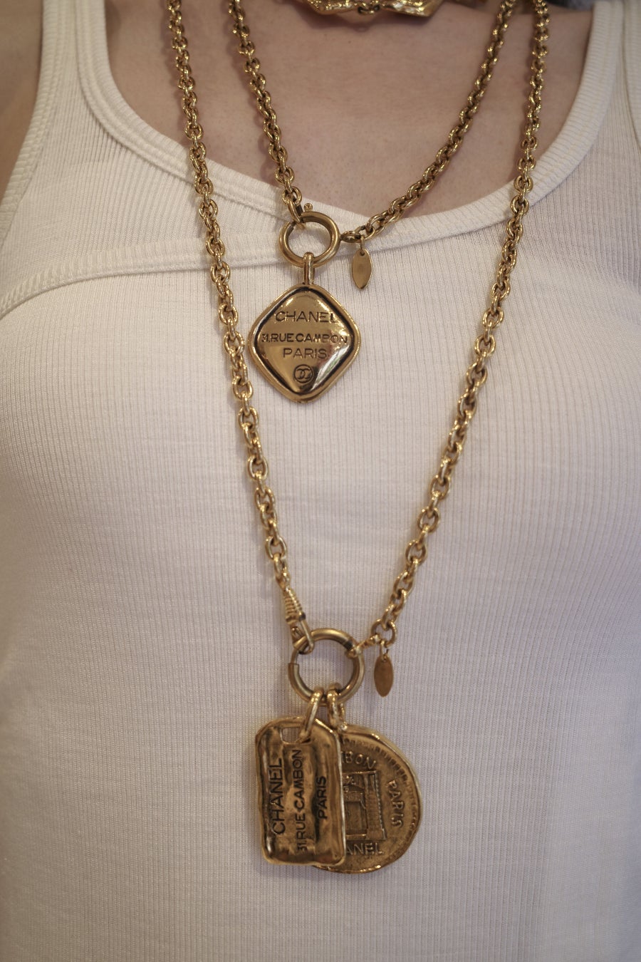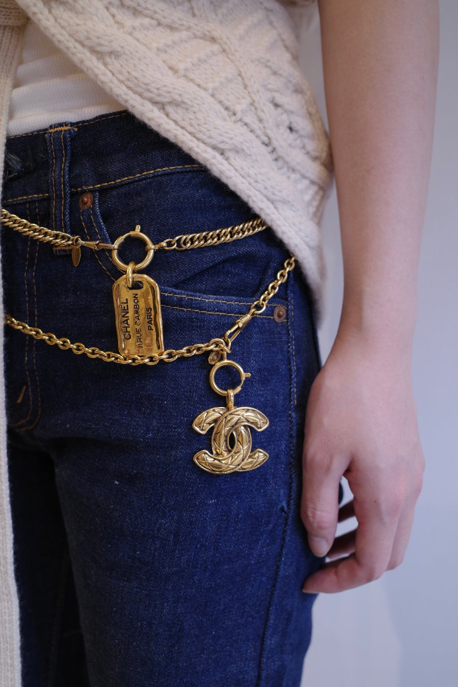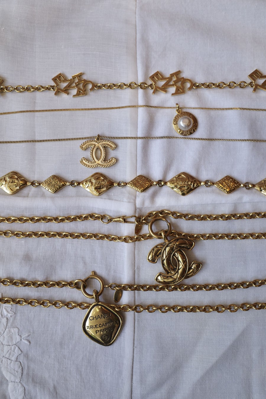 ブランドを代表するアイコニックなモチーフのチェーンベルトやネックレスは、