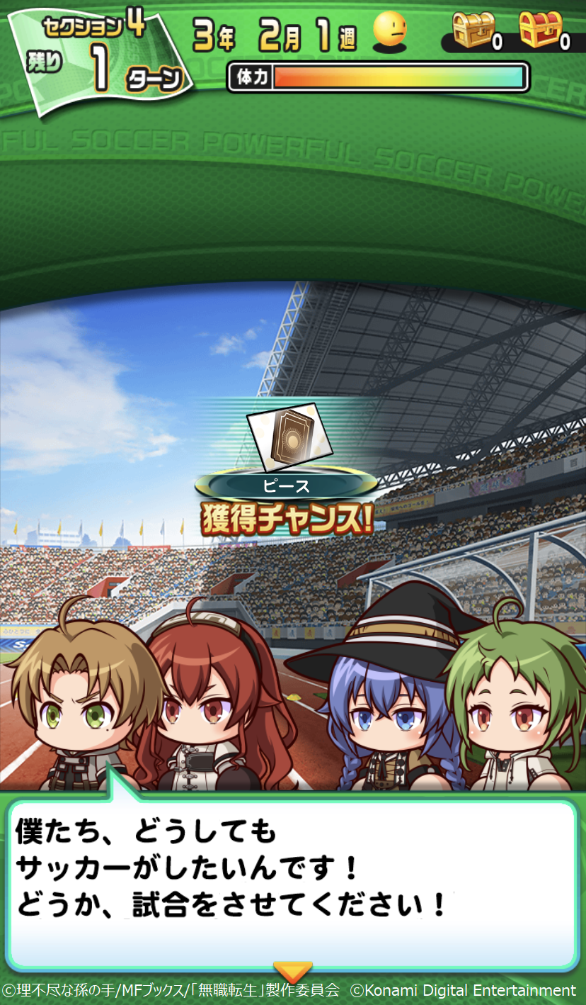 株式会社コナミデジタルエンタテインメントは、モバイルゲーム『実況パワフルサッカー』(以下、『パワサカ』)において、アニメ「無職転生 ~異世界行ったら本気だす~」 (原作:理不尽な孫の手)とのコラボレーションを本日1月13日(木)からスタートしたことをお知らせします。