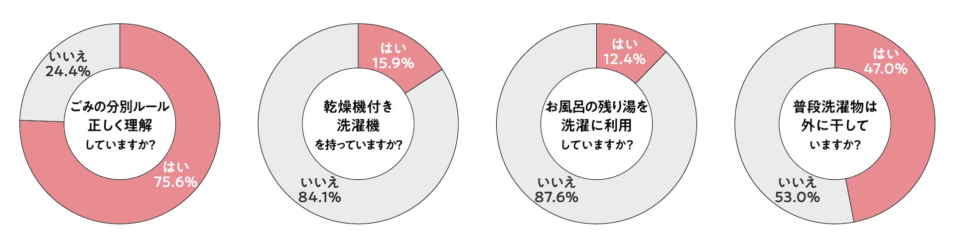ごみの分別ルールを正しく理解していないと回答したのは24.4%で、4人に1人は正しく理解できていないことが分かりました。また、洗濯物は半数以上が普段外に干していないという結果になりました。
