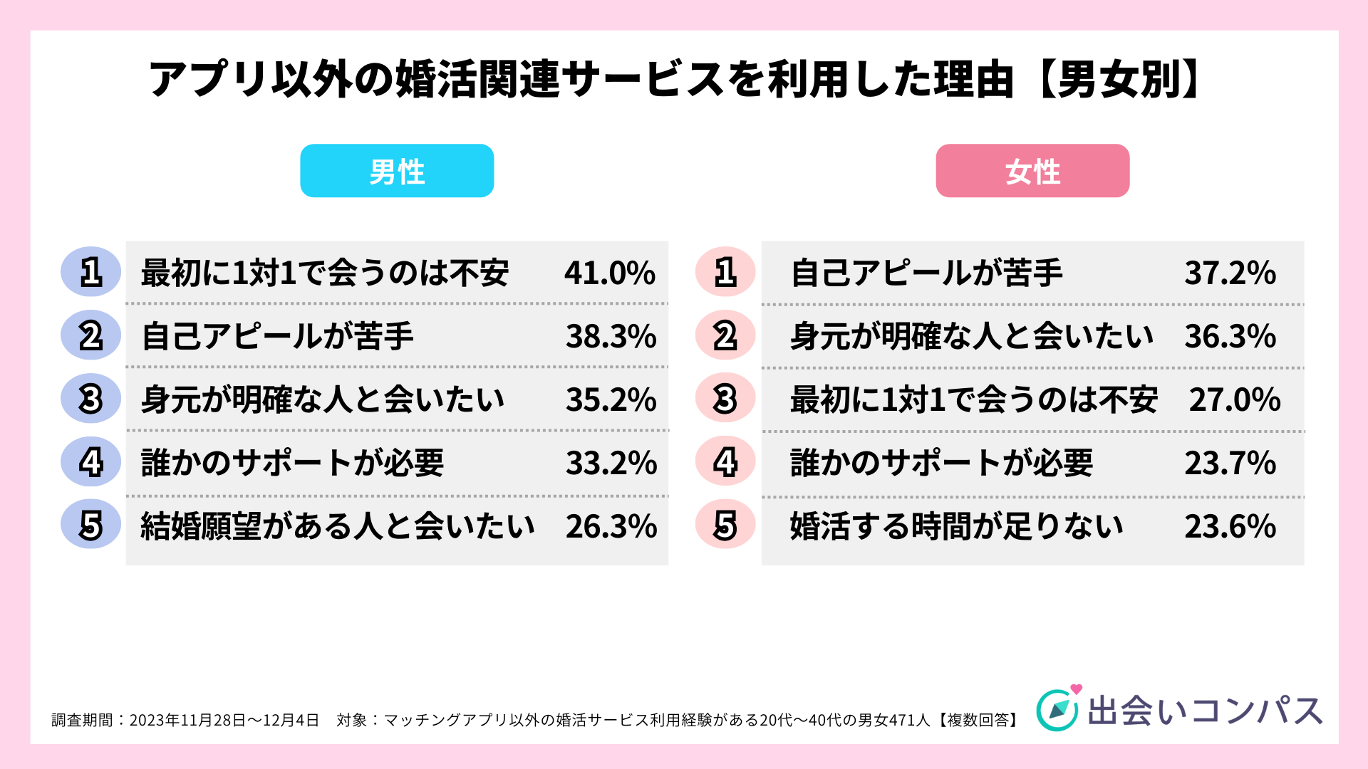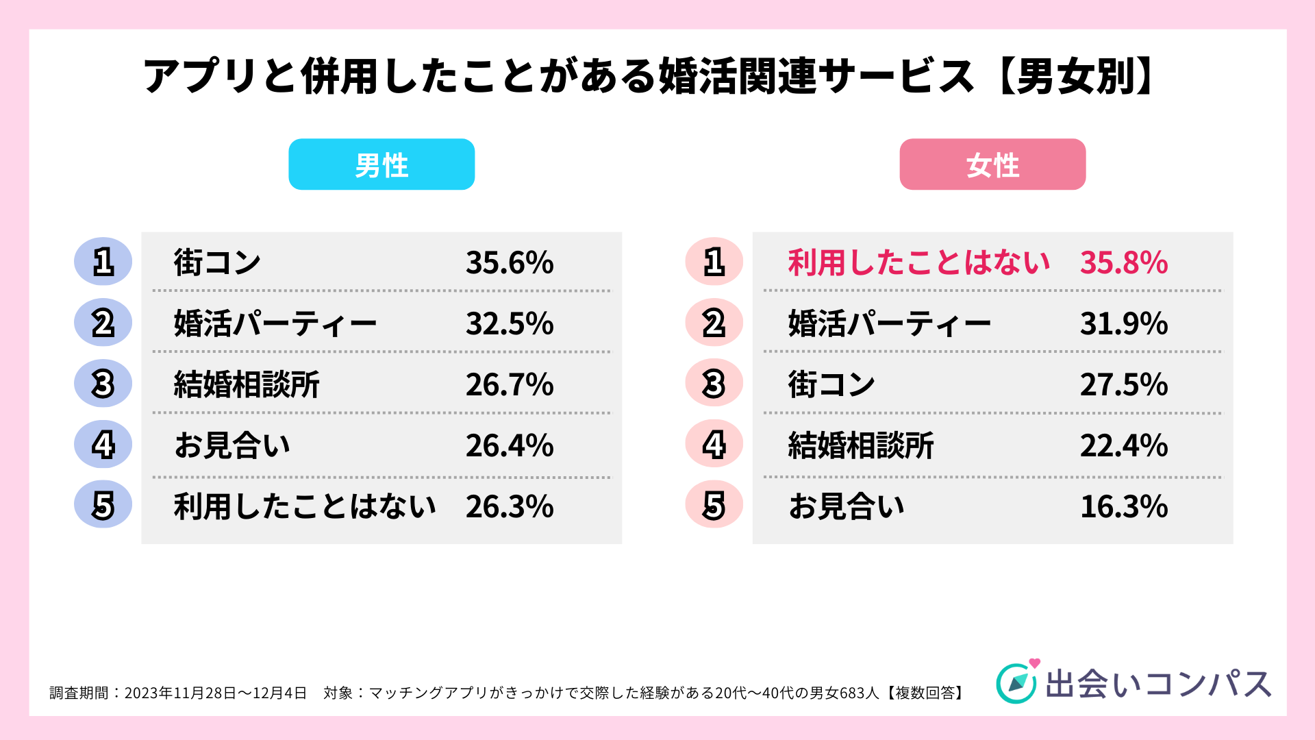 恋愛・婚活に関するアンケート調査(出会いコンパス調べ)