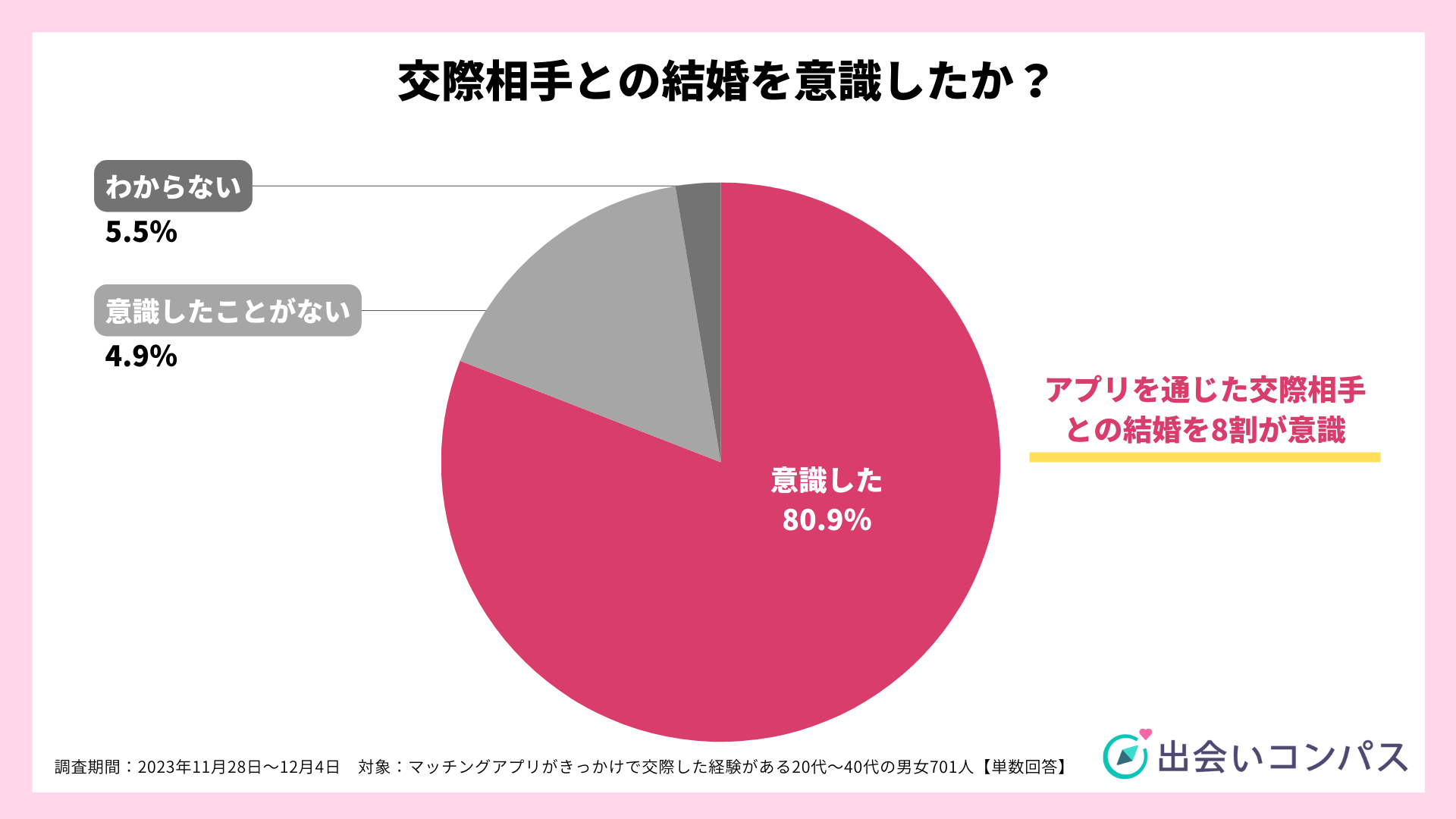 マッチングアプリで交際した相手と「結婚を意識した」が80.9%