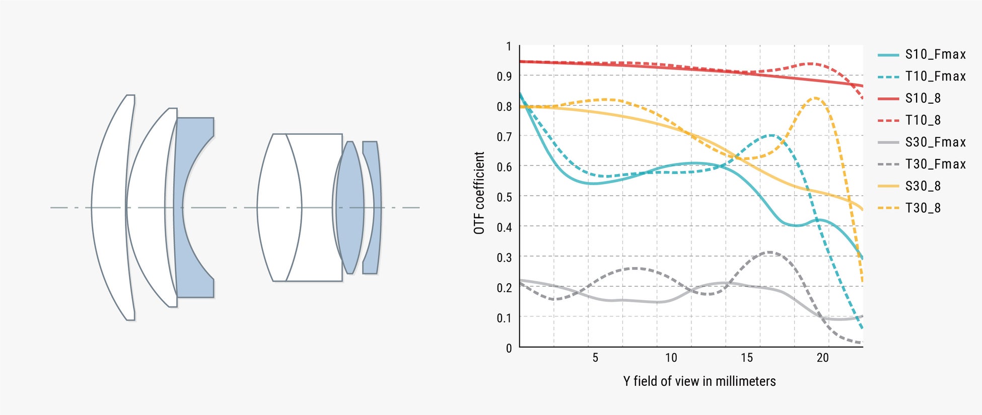 レンズ構成:6群7枚(高屈折低分散ガラスレンズ3枚)