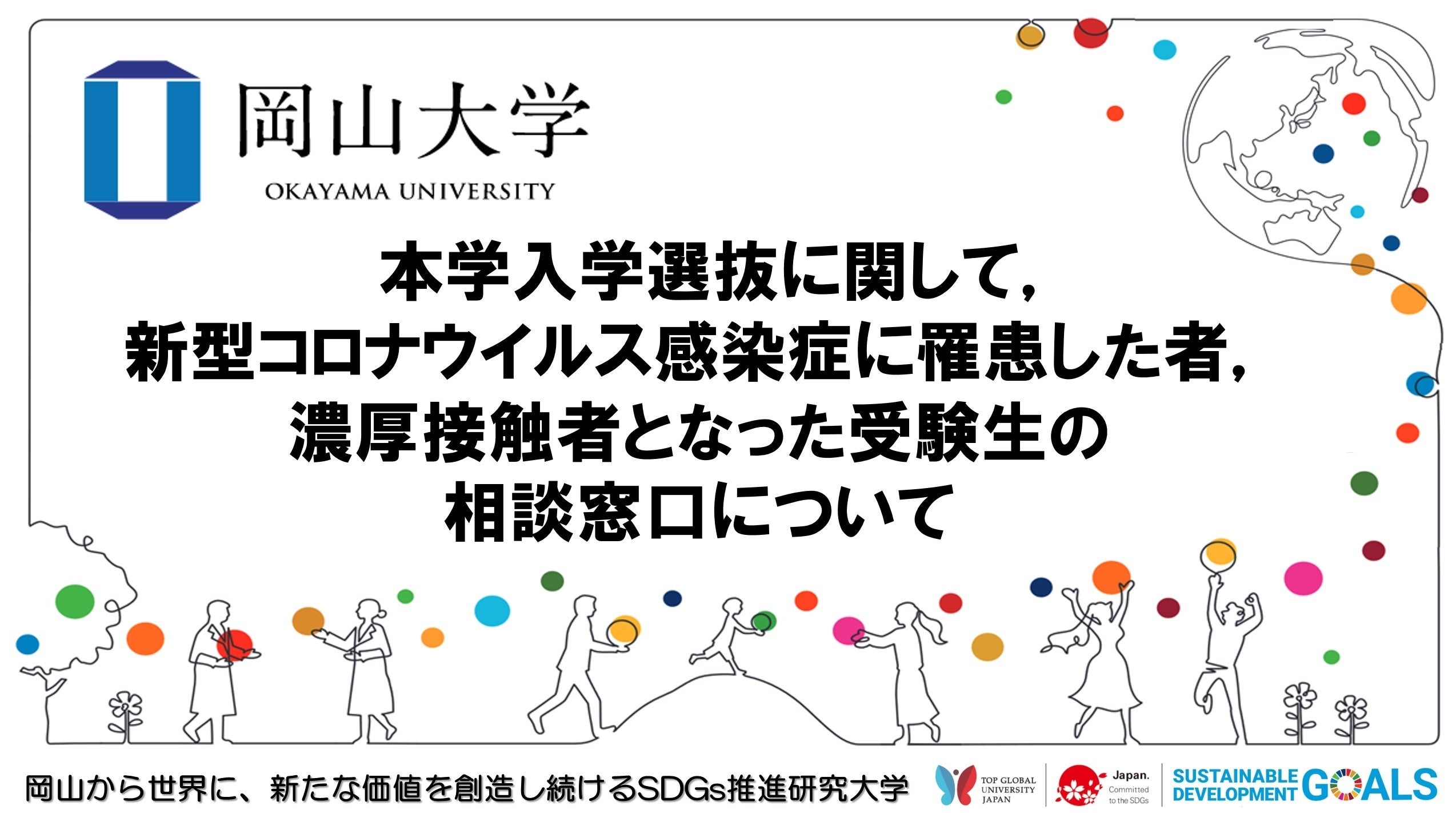 【岡山大学】本学入学選抜に関して,新型コロナウイルス感染症に罹患した者,濃厚接触者となった受験生の相談窓口について
